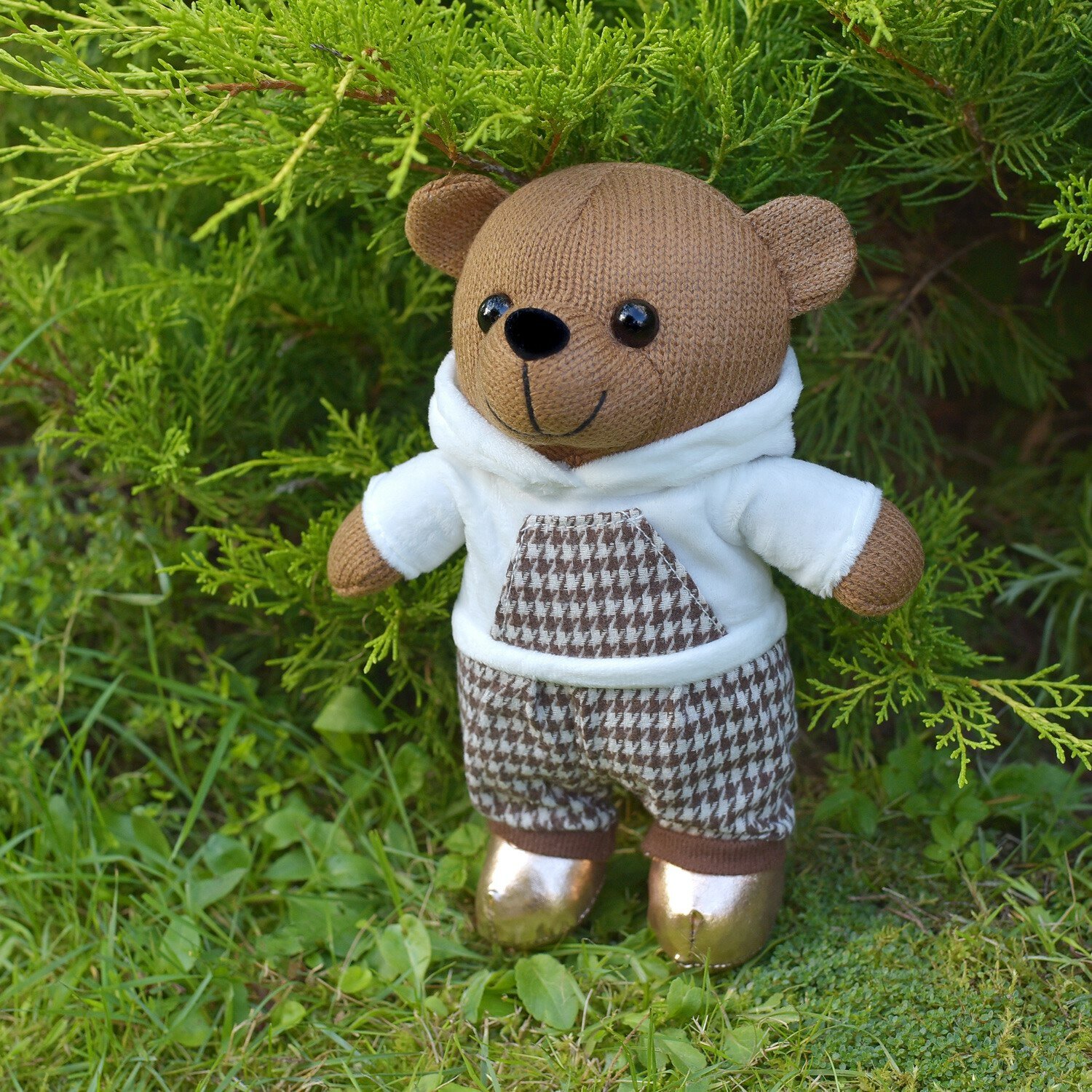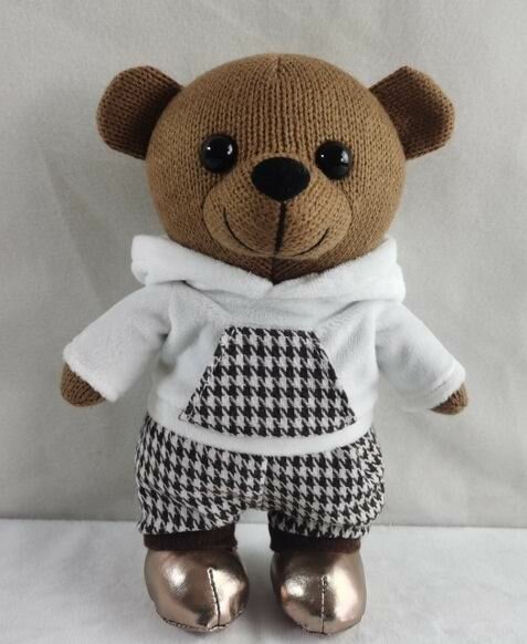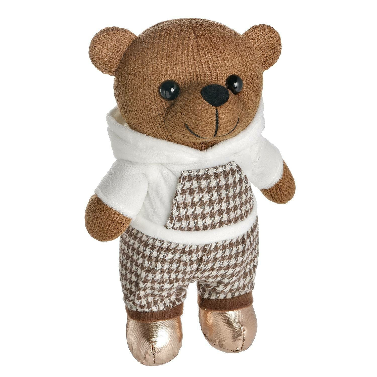 Игрушка мягкая Abtoys Knitted Мишка вязаный мальчик в белом худи 25 см (размер: средняя)