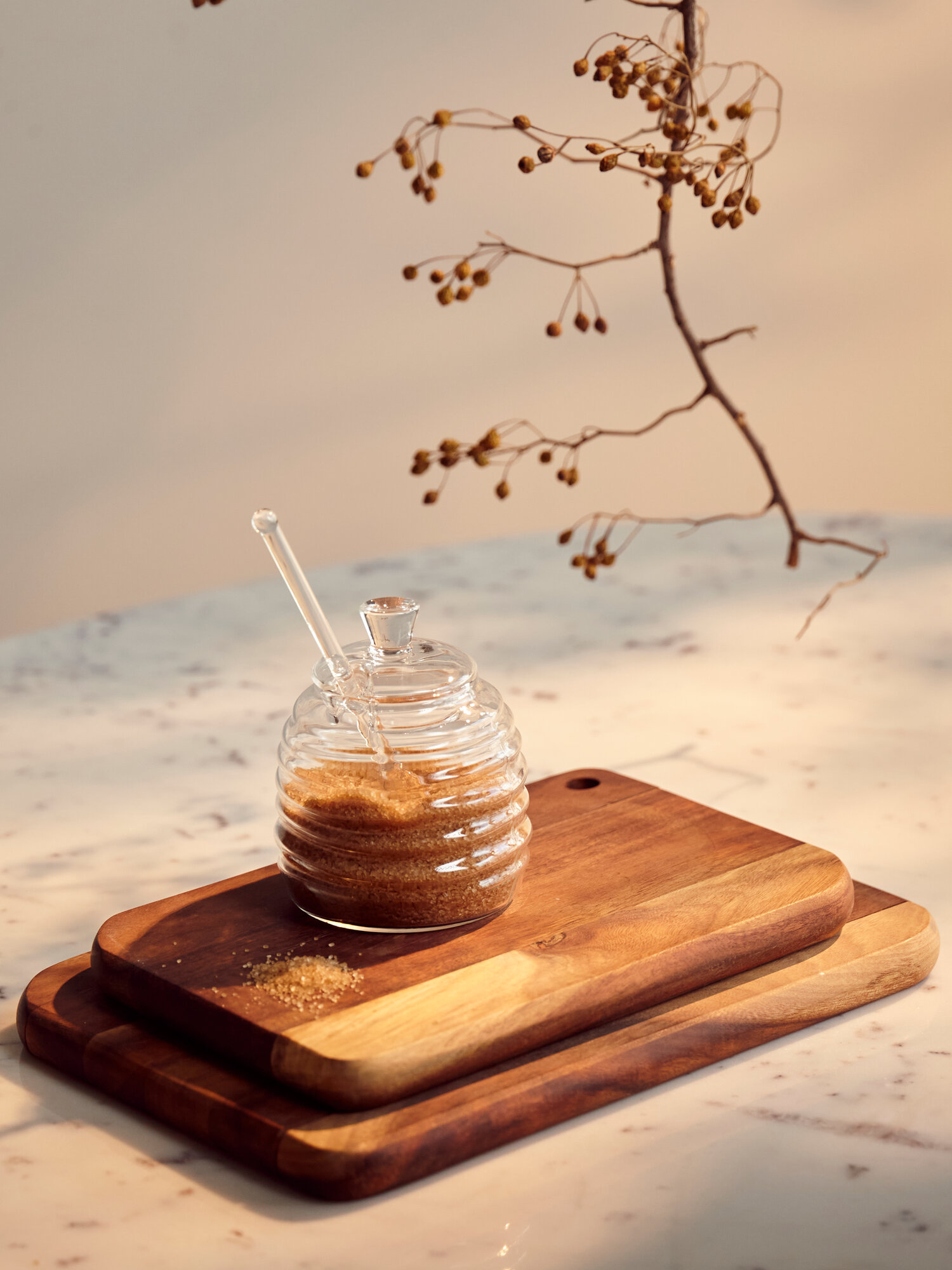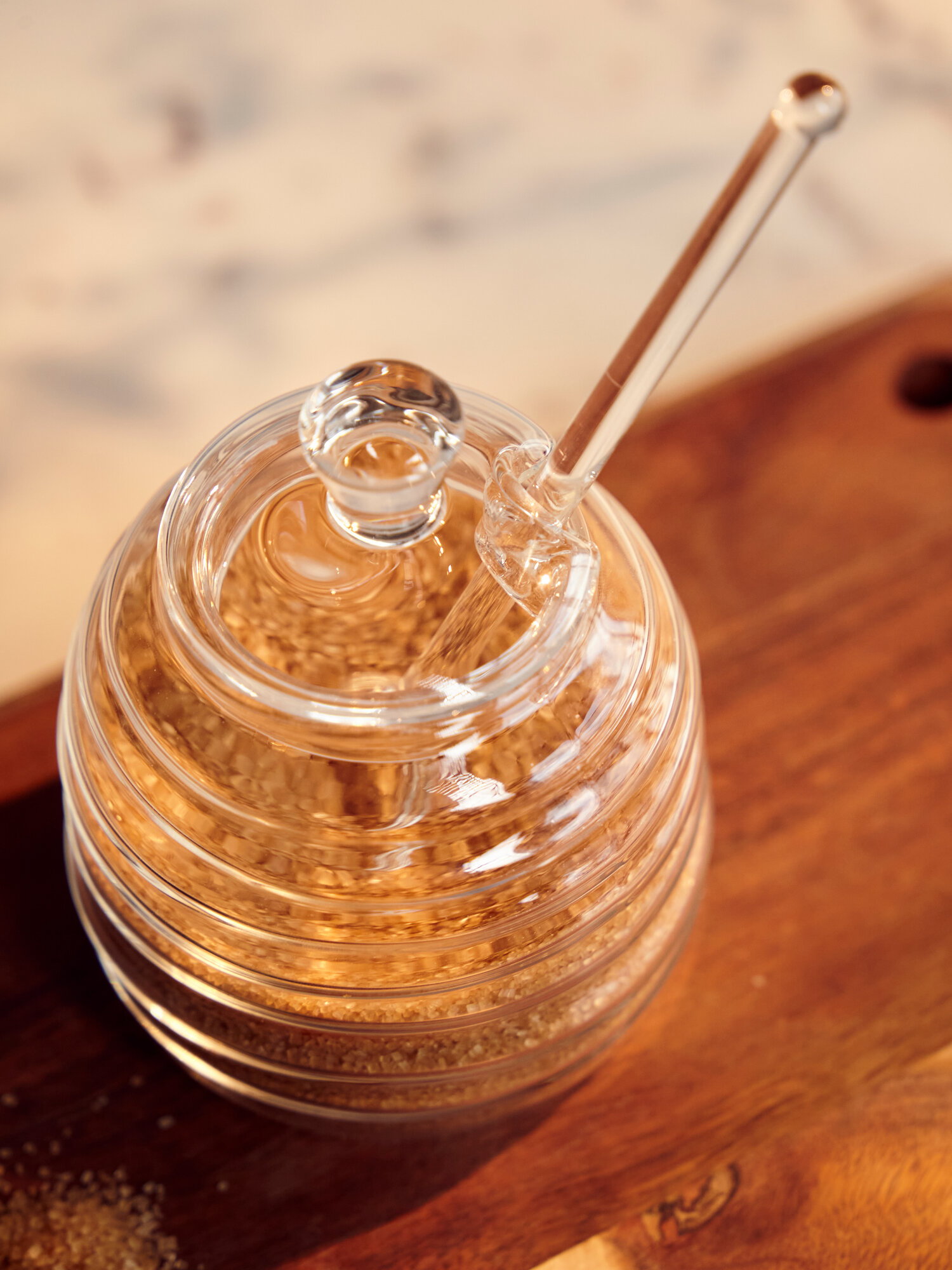 - Сахарница и ложка изготовлены из прочного, стойкого к износу и температурным перепадам боросиликатного стекла.