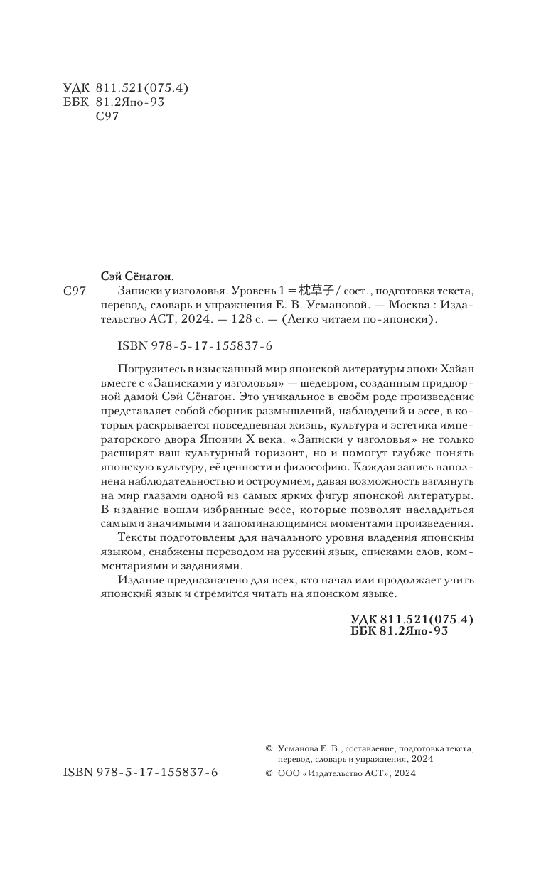 Записки у изголовья. Уровень 1 = Makura no Soshi (Сэй-Сёнагон); Издательство АСТ, 2024