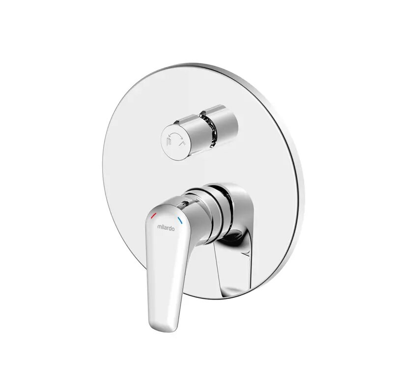 **Встраиваемый смеситель Dale Milardo** для установки в душевой зоне. К нему можно подключить два душевых аксессуара: верхнюю лейку, ручную лейку, настенный излив – выбирайте удобную комбинацию сами. Основные механизмы системы располагаются внутри встраиваемого блока, видимыми остаются только элементы управления. Блок идет в комплекте. Пластиковый монтажный бокс защищает устройство подачи воды от внешнего воздействия. Установка смесителя возможна на стенах практически любой конструкции и материала. Подключается с помощью любых труб с диаметром входных отверстий ½ дюйма. Подходит для систем с водой высокой температуры (70-80° С) в трубах. Например, при эксплуатации с газовой колонкой. Хромированное покрытие смесителя Milardo оптимальной толщины не подвержено образованию трещин и царапи