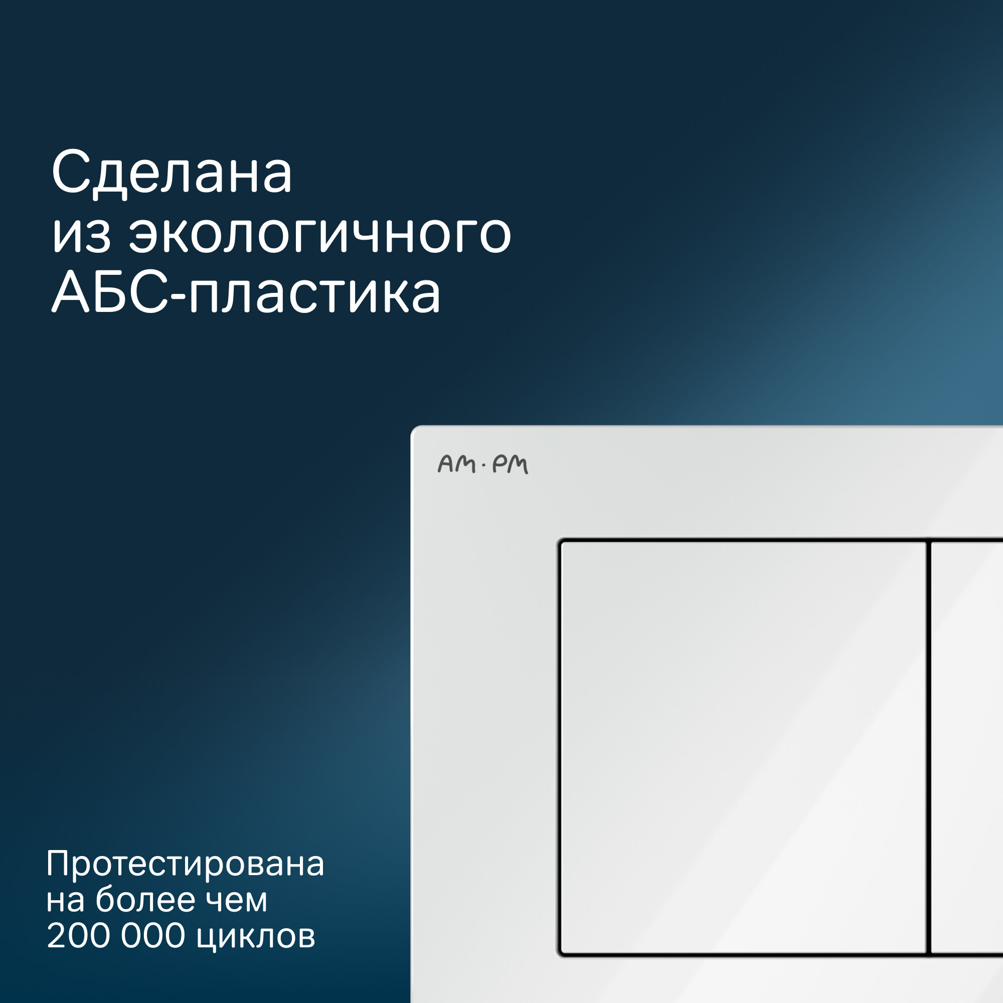 Двойной смыв - 3/6 л.Механический принцип работы, все крепления в комплекте.Клавиша подходит для инсталляции AM.PM PrimeFit I012709.