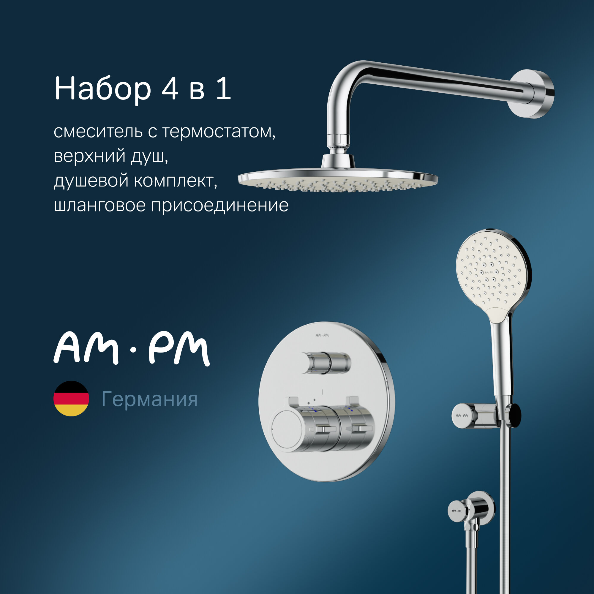 Встраиваемая душевая система Am.Pm X-Joy FT85A3RH10 с тропическим душем, душевой лейкой, смесителем, термостатом, хром