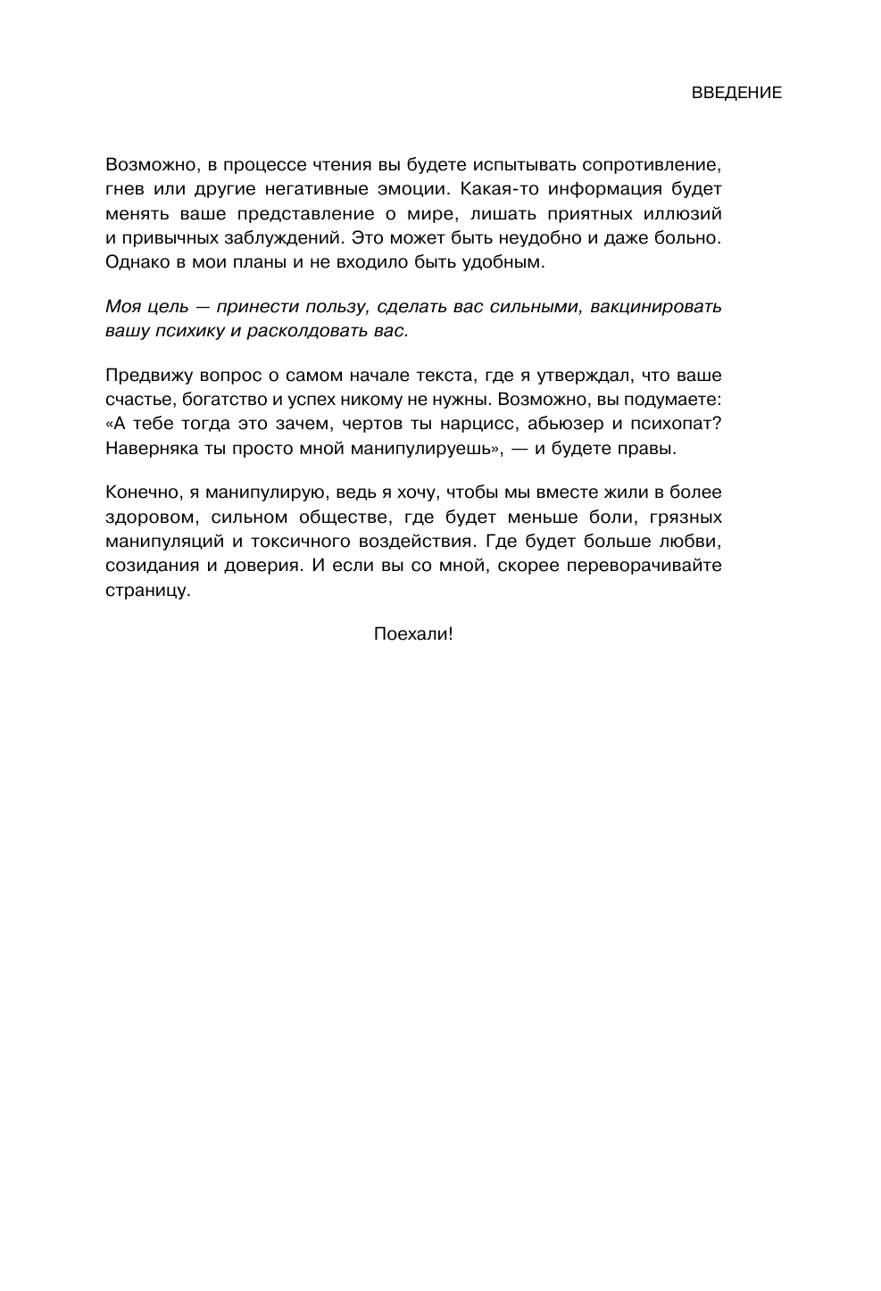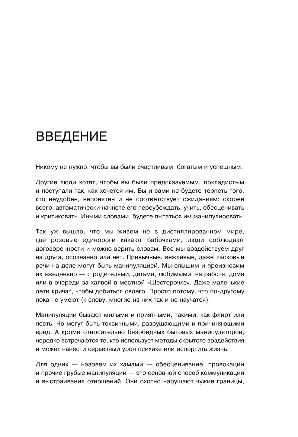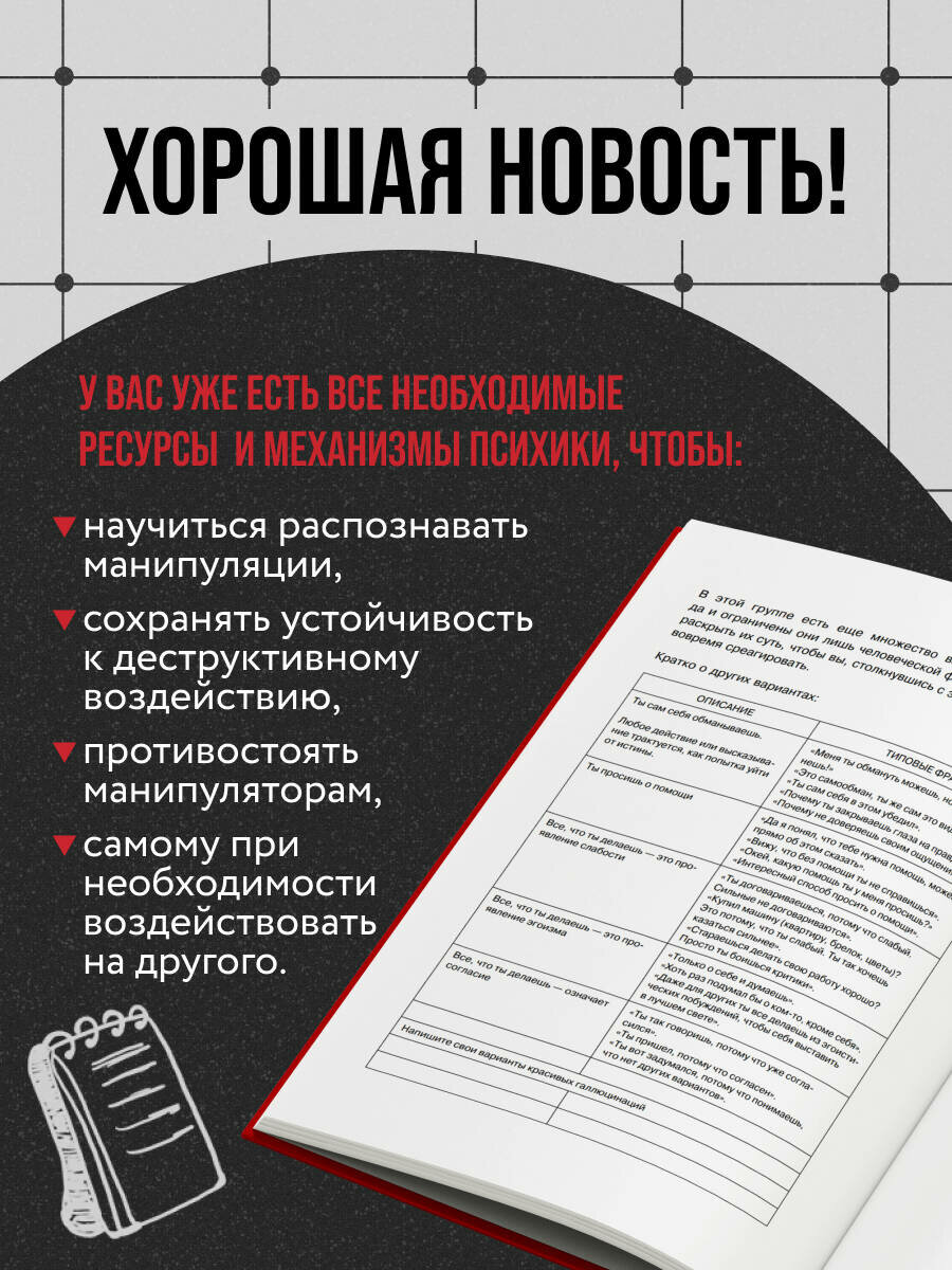 Вся наша жизнь - манипуляции друг другом. Мы регулярно сталкиваемся с деструктивным влиянием окружающих. Нас газлайтят в постели, вербуют на собеседовании и заставляют поверить любым новостям. Как понять, что вами управляют и очистить коммуникацию от токсичных приемов? Прежде всего - изучить механизм изнутри. Перед вами главное пособие по правилам игры с манипуляторами. В книге автор делится собственной методикой и рассказывает: • Почему «все мужики - козлы, а бабы меркантильные»;