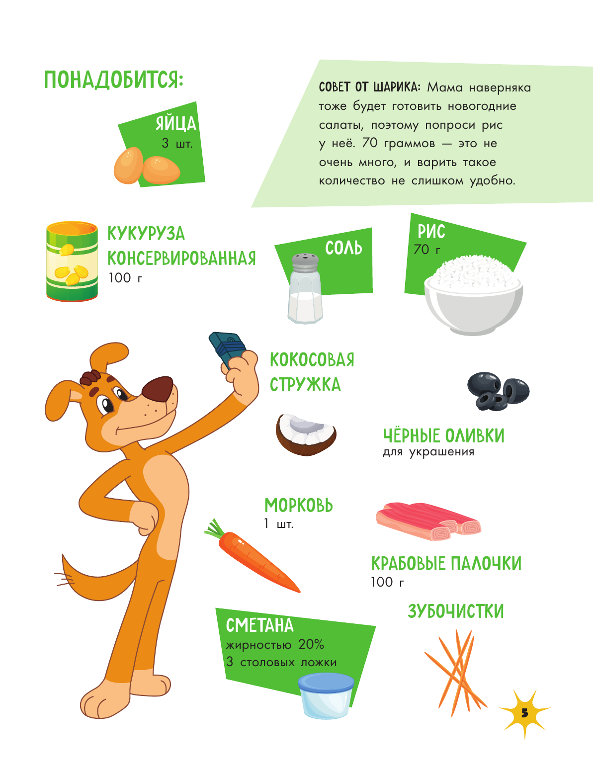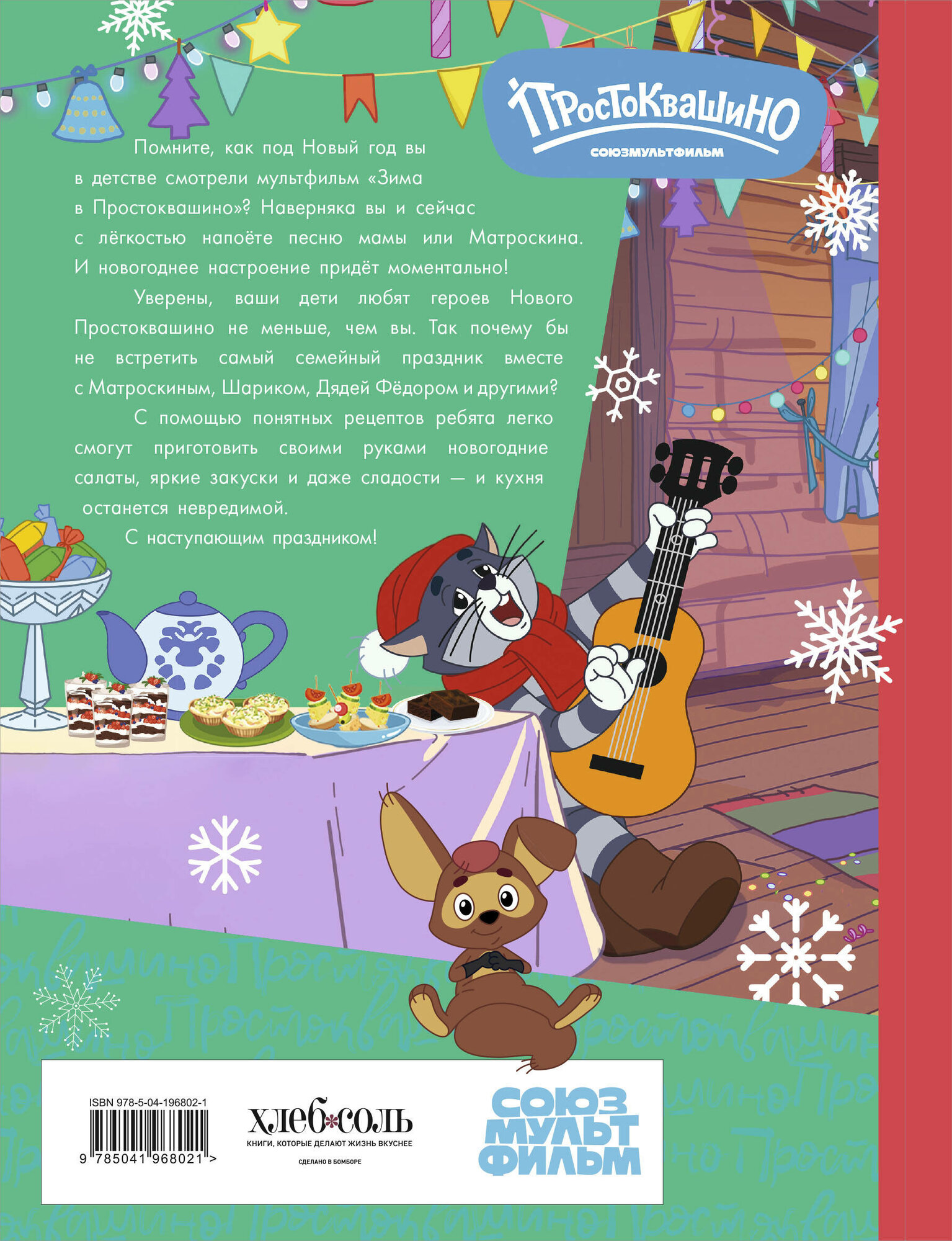Книга из новой серии «Готовим с Простоквашино» поможет ребятам освоить яркие, вкусные и легкие в исполнении новогодние рецепты. Лососевые рулетики из красной рыбки от мамы, красивый салат «Шишка» от Матроскина, изысканное канапе от няни и даже торт из зефира — все эти блюда дети приготовят сами (или с вашей минимальной помощью).