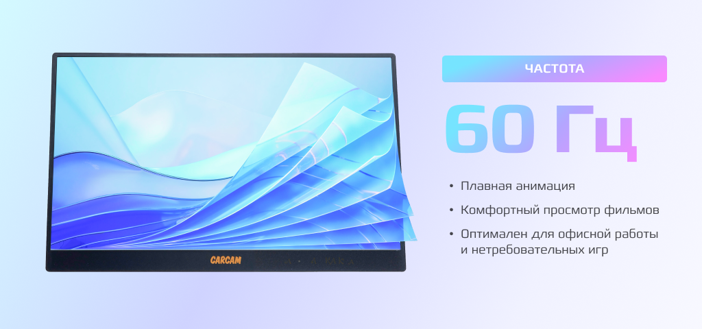 Портативный монитор CARCAM 15.6'' IPS 1080P 60Hz Portable Monitor Type-C*2 miniHDMI for PC Laptop Phone (CCL156FA)