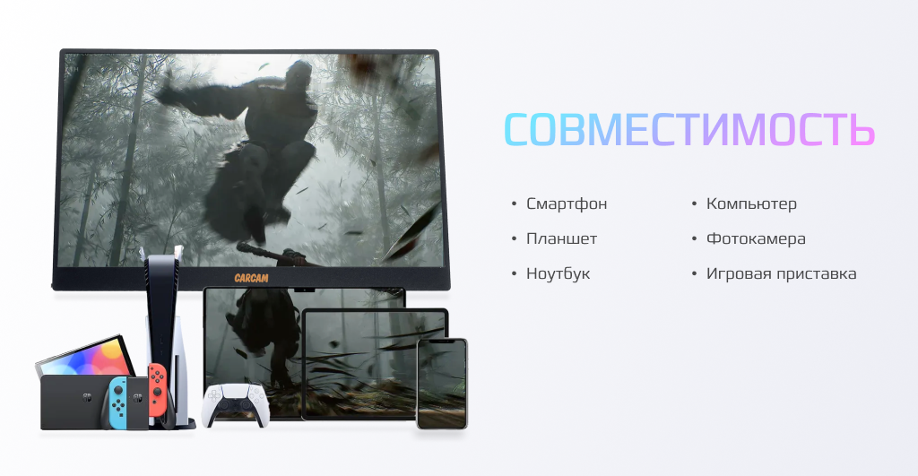 На сегодняшний день товар «Портативный монитор CARCAM 15.6'' IPS 1080P 60Hz Portable Monitor Type-C*2 miniHDMI for PC Laptop Phone (CCL156FA)» можно купить с кешбеком в 1 магазине: Яндекс.Маркет