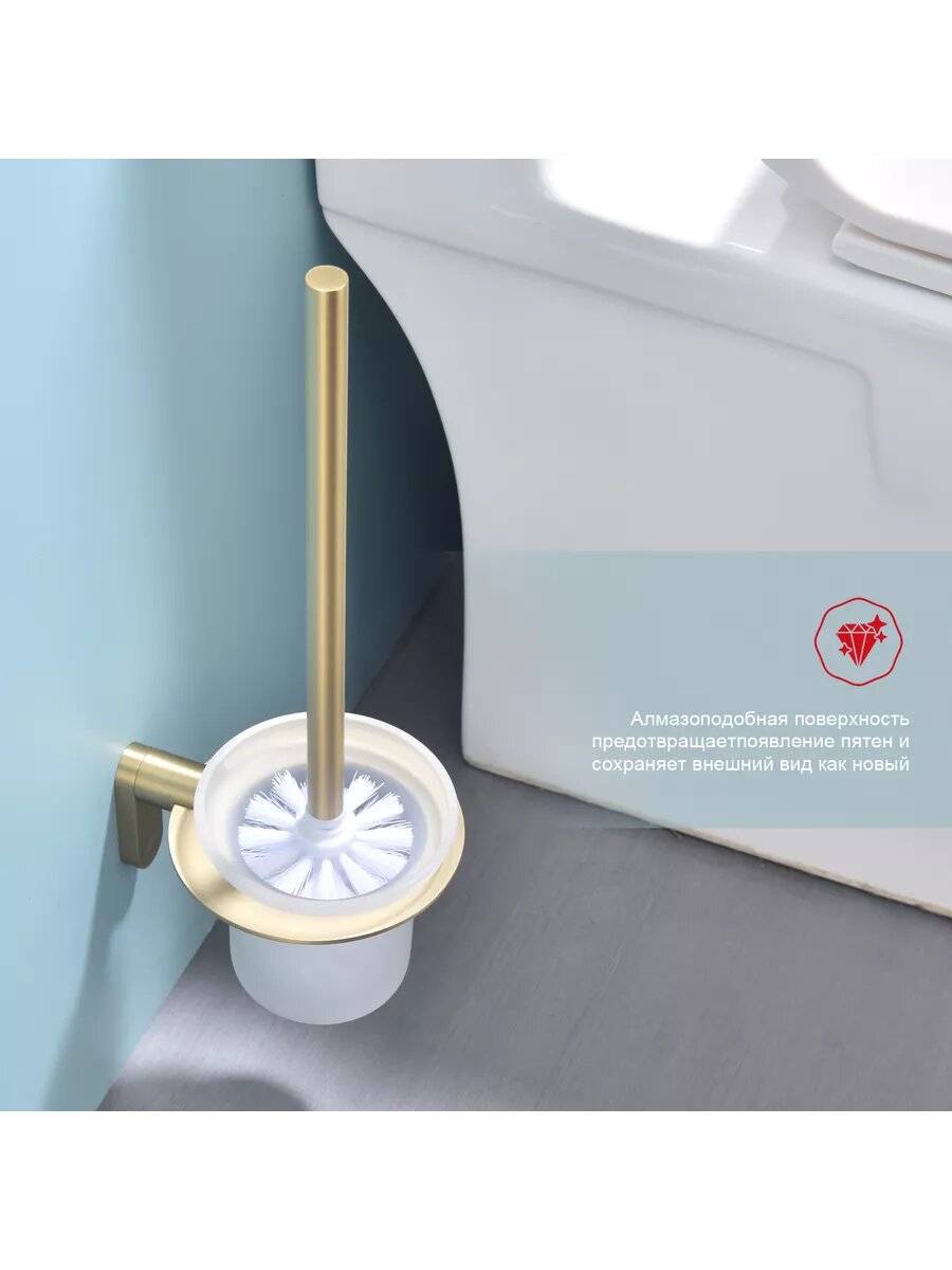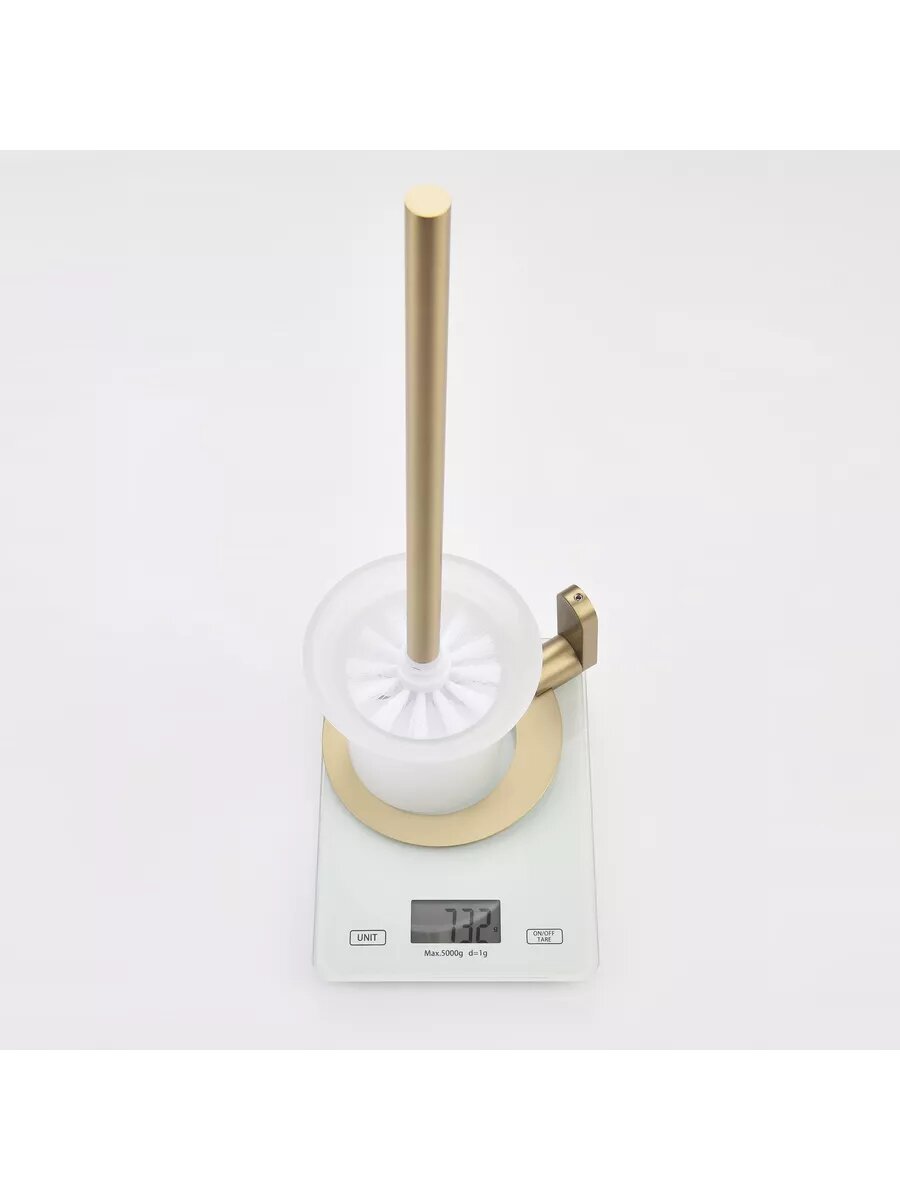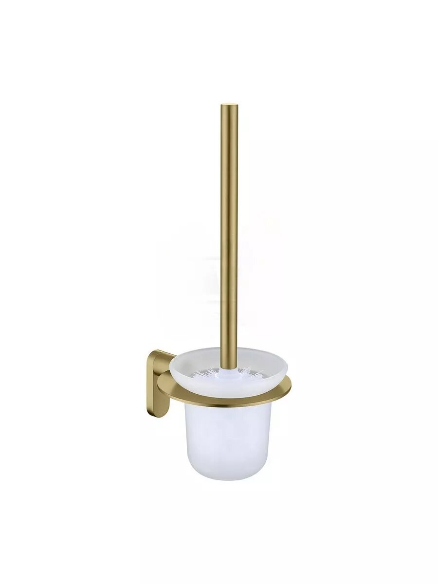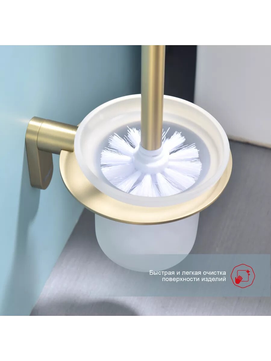 Ершик для унитаза настенный с держателем. Форма округлая, цвет - сатиновое золото, полуматовое покрытие. Крепление в комплекте.