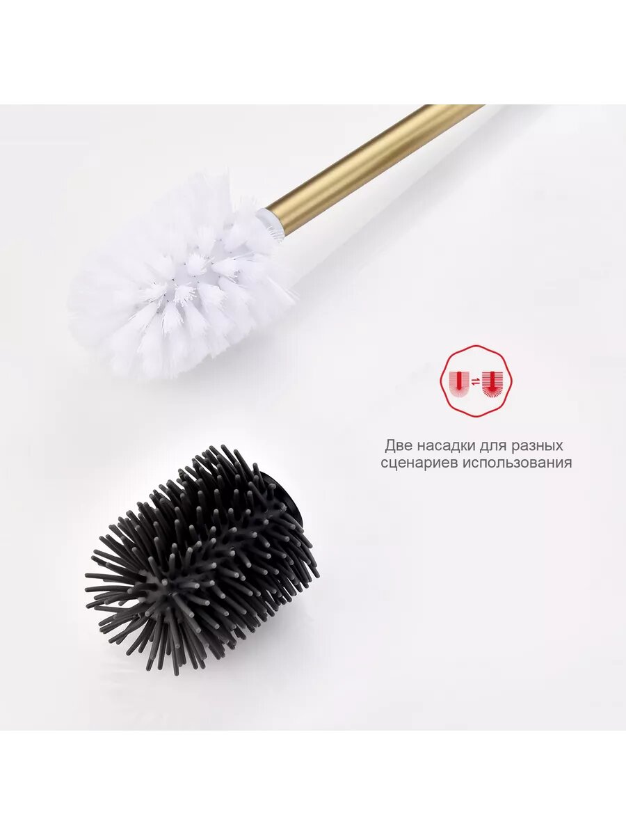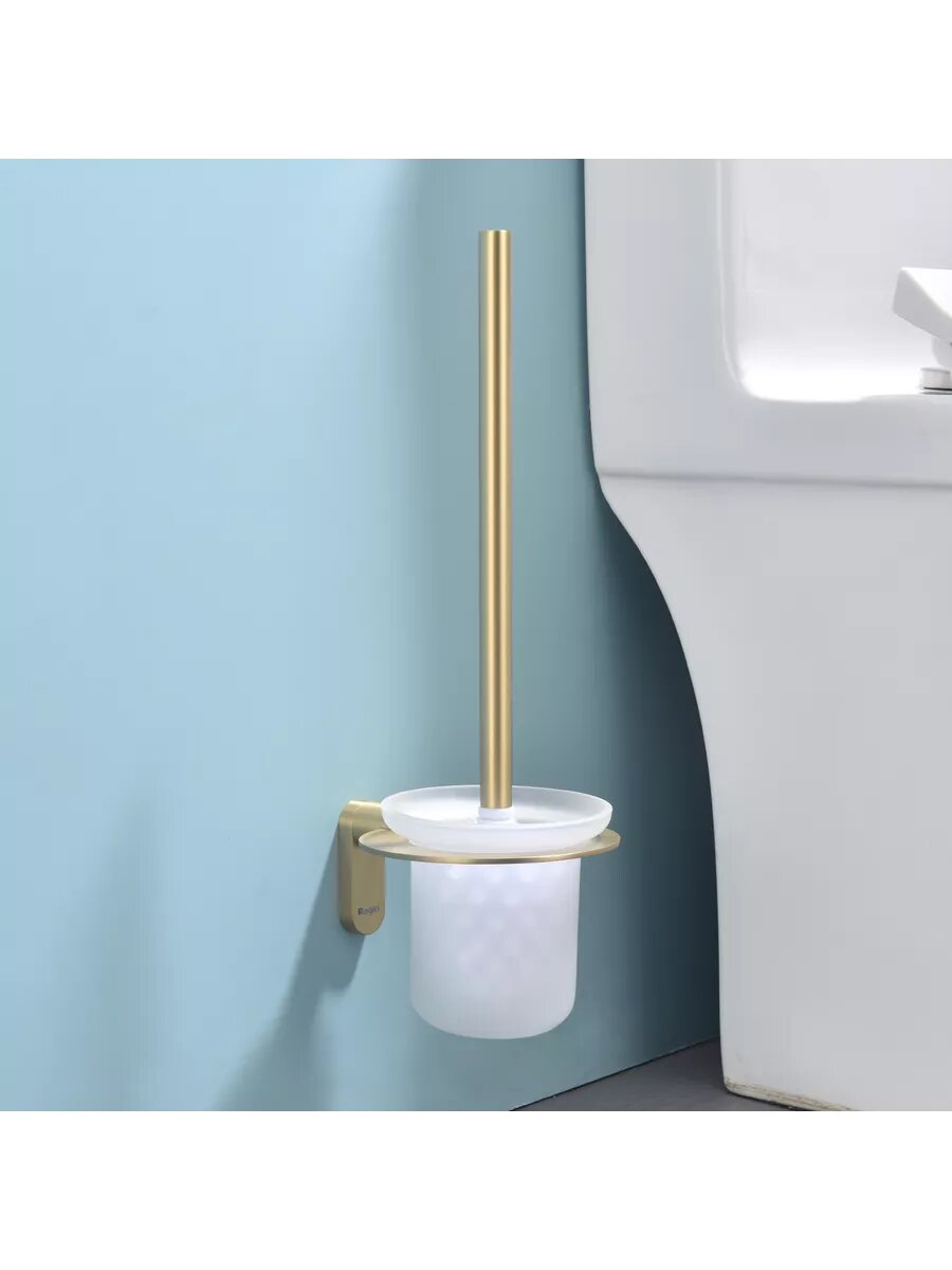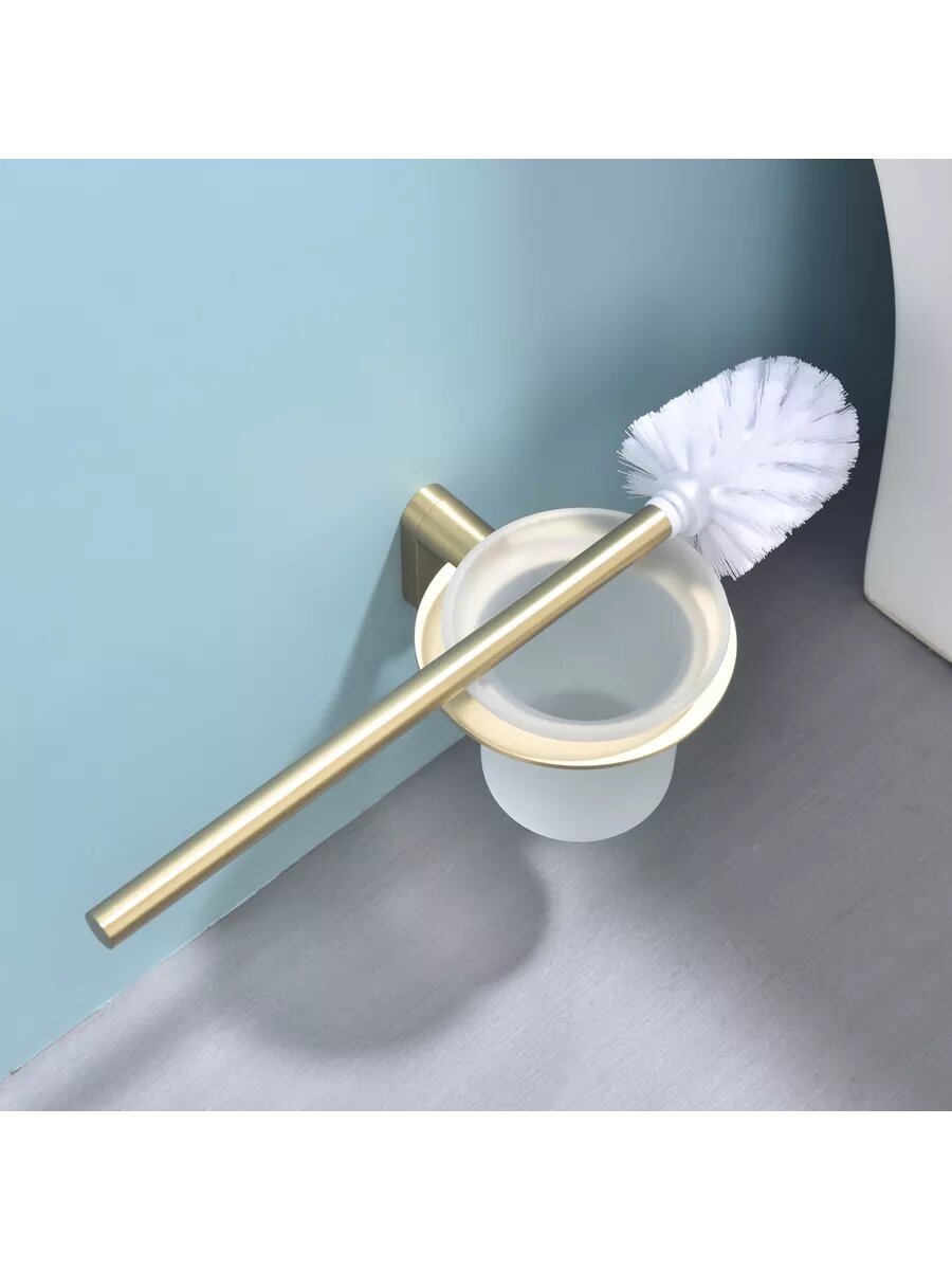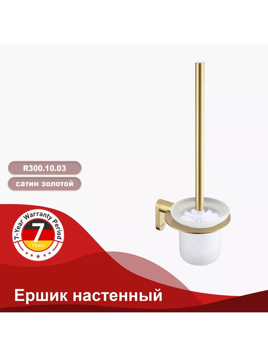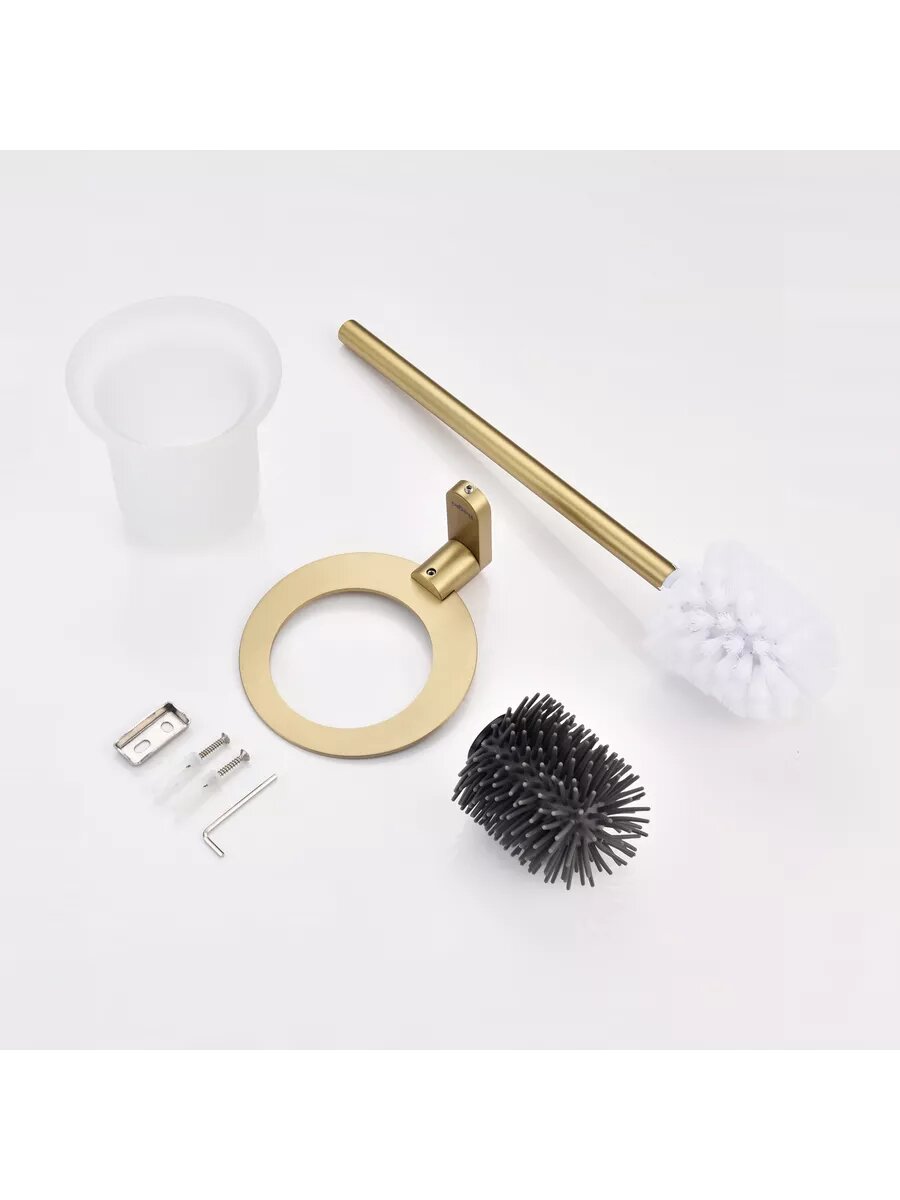 Ершик для унитаза настенный с держателем. Форма округлая, цвет - сатиновое золото, полуматовое покрытие. Крепление в комплекте.