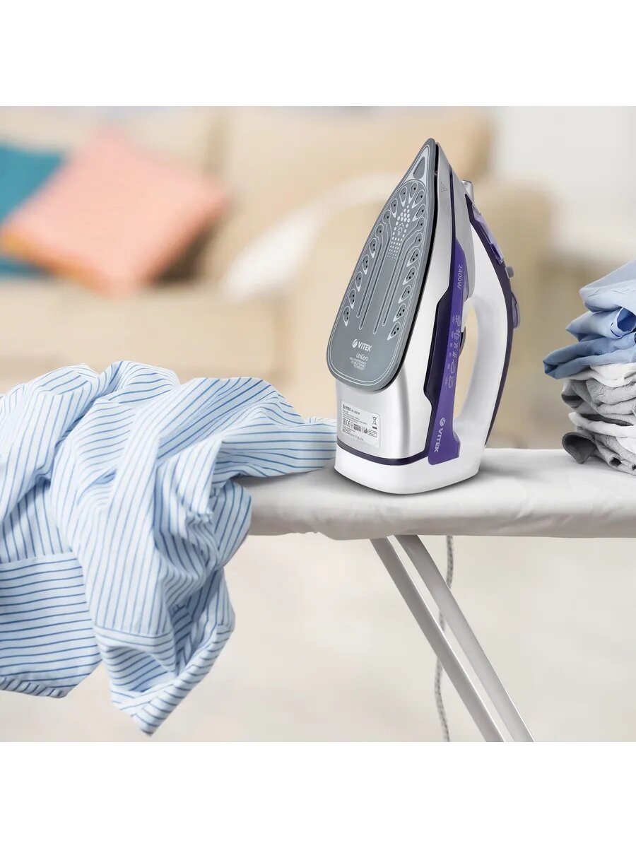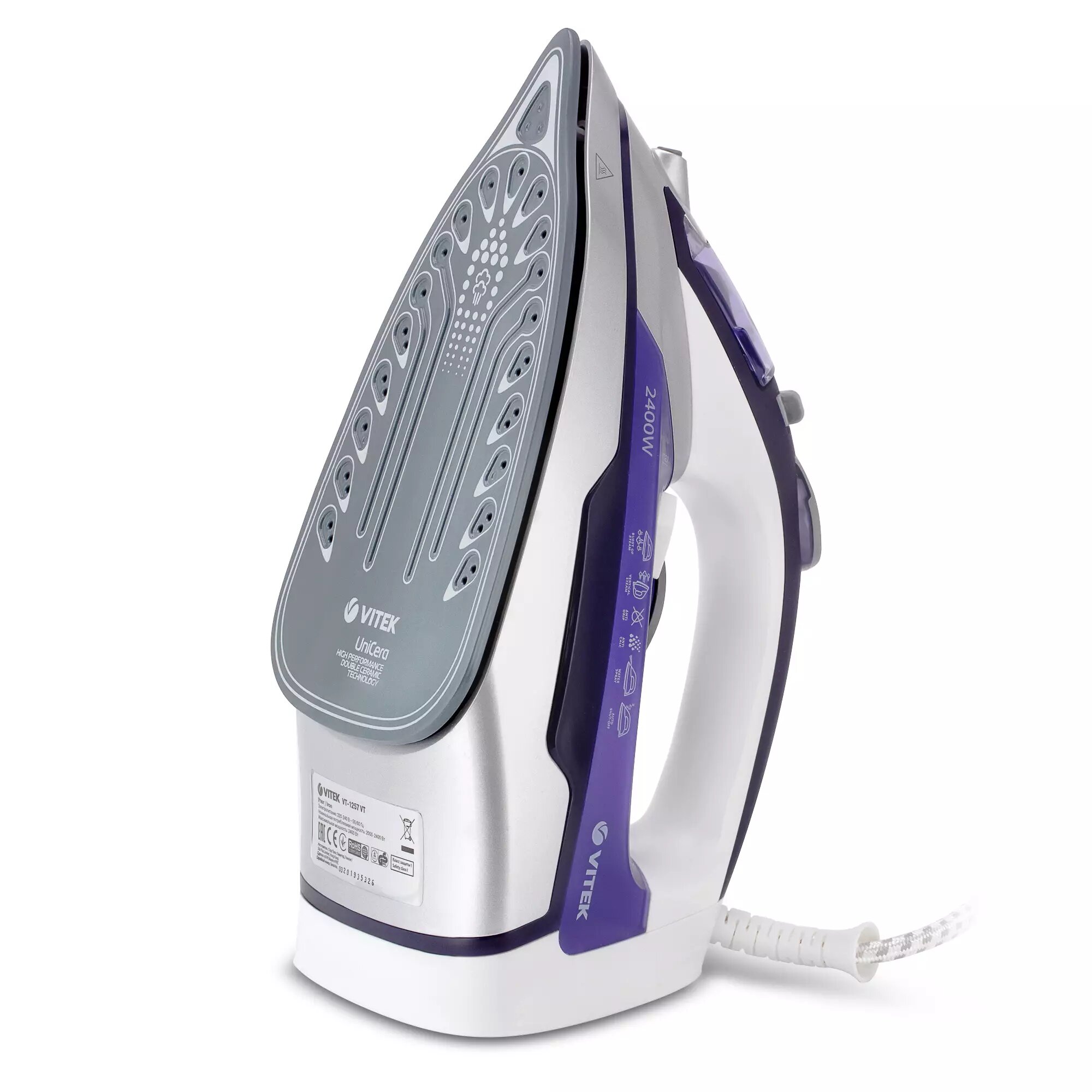Паровой утюг Vitek гармонично сочетает в себе высокую эффективность и простоту в использовании. Подошва с керамическим покрытием обеспечивает равномерное распределение пара и идеальное скольжение по ткани вне зависимости от ее типа. Мощный паровой удар легко расправляет заломы в неподатливых и плотных тканях, делая процесс глажения еще более результативным. Утюг оснащен системой капля-стоп, благодаря чему вы сможете гладить даже деликатные ткани при низкой температуре, не беспокоясь о появлении пятен воды на одежды. Надежная защита от накипи предотвращает образование известкового налета, продлевая срок службы прибора, а функция автоматического отключения со звуковым сигналом обеспечивает его безопасное использование.