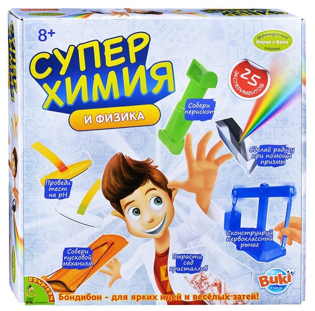 Набор для опытов Науки с Буки: Супер химия и физика + 25 экспериментов от Bondibon