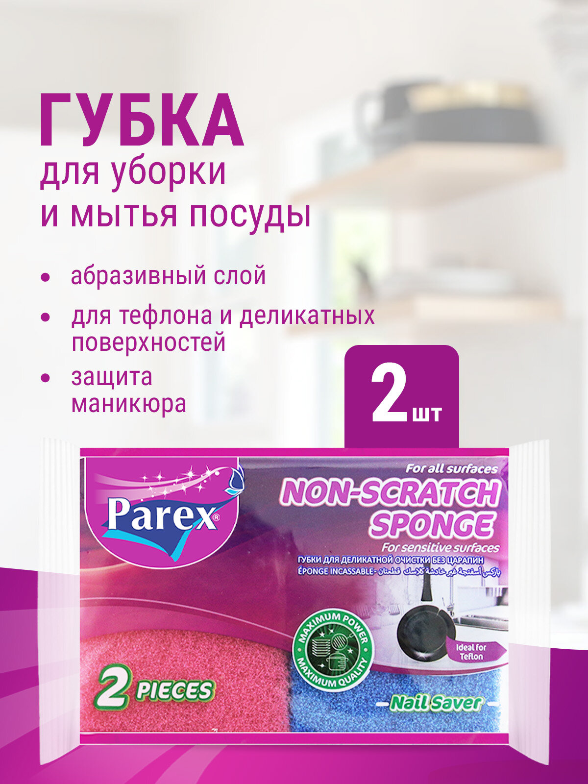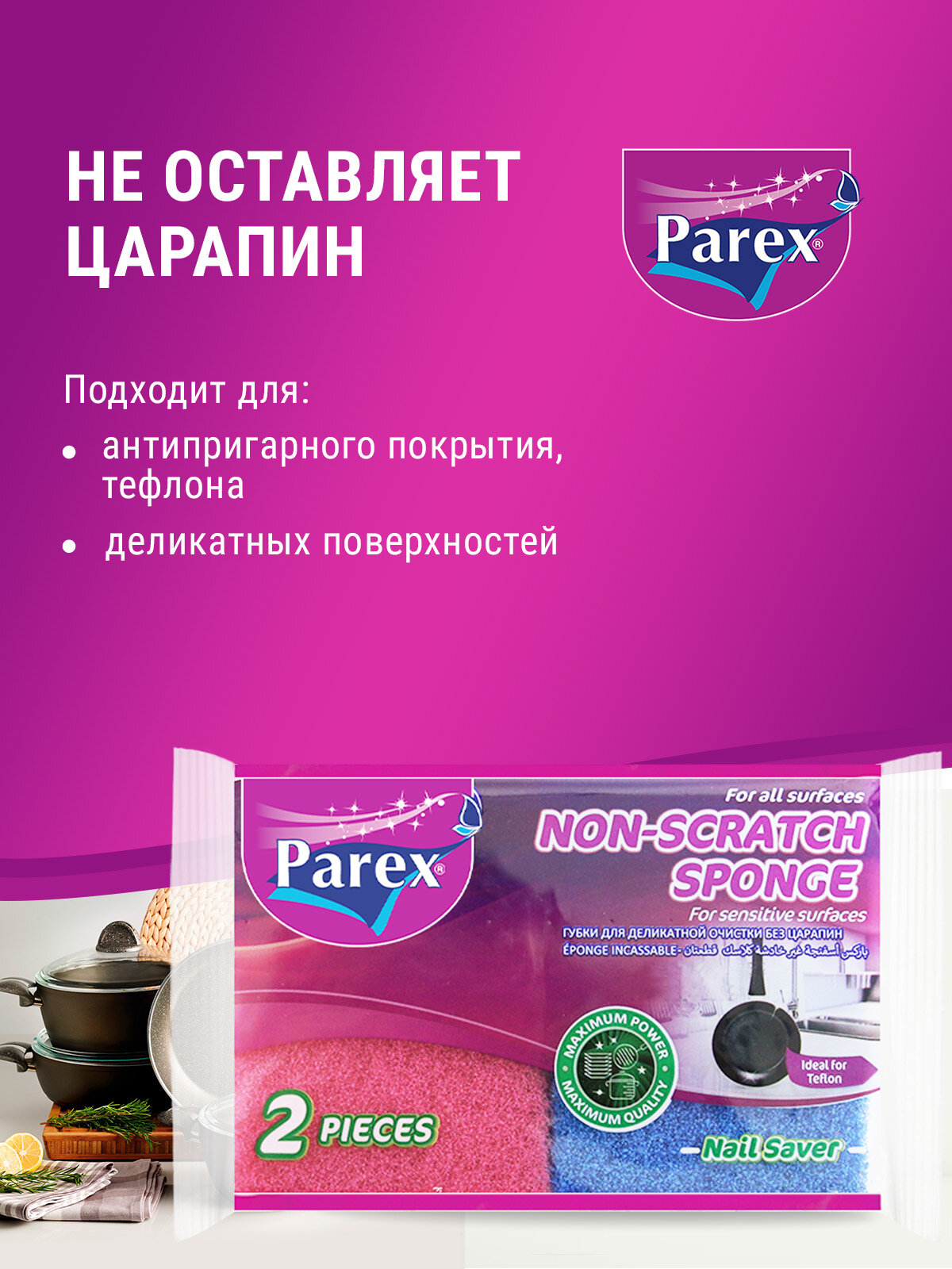 Губка Parex с защитой маникюра для мытья посуды 4 шт
