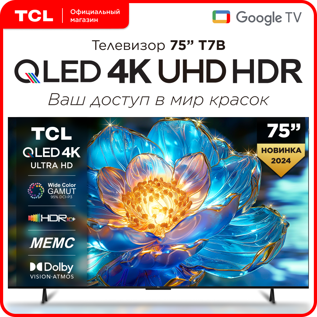 Телевизор TCL 75" QLED UHD Google TV - это современный 4K телевизор, который обеспечивает невероятно четкое и реалистичное изображение. Благодаря технологии QLED, каждый пиксель на экране воспроизводит яркие и насыщенные цвета, что создает удивительную глубину и детализацию. Этот телевизор также оснащен функцией Smart TV, что позволяет получить доступ к огромному количеству контента из интернета.Благодаря Google TV, вы сможете легко находить фильмы, сериалы и видео на различных платформах, таких как YouTube и многое другое. Умный телевизор TCL также поддерживает голосовое управление, что позволяет вам управлять им просто говоря команды.Этот телевизор имеет большой диагональю 75 дюймов, что позволяет наслаждаться кинематографичным опытом и ощущением присутствия. Вы сможете наслаждаться любимыми фильмами, спортивными событиями и играми с высокой четкостью и яркостью.