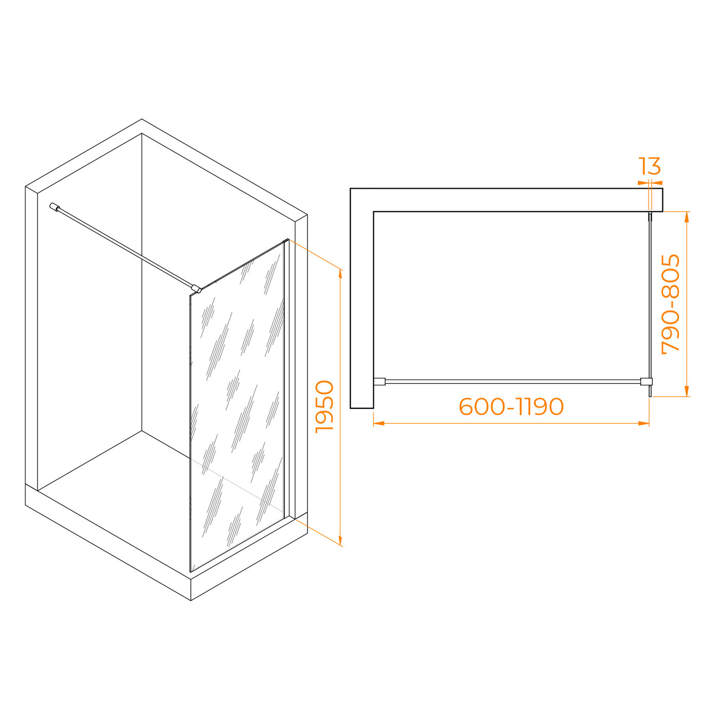 Высота перегородки для душа RGW WA-010 составляет 195 см, что обеспечивает комфортное использование для большинства людей и позволяет избежать протекания воды через край перегородки.