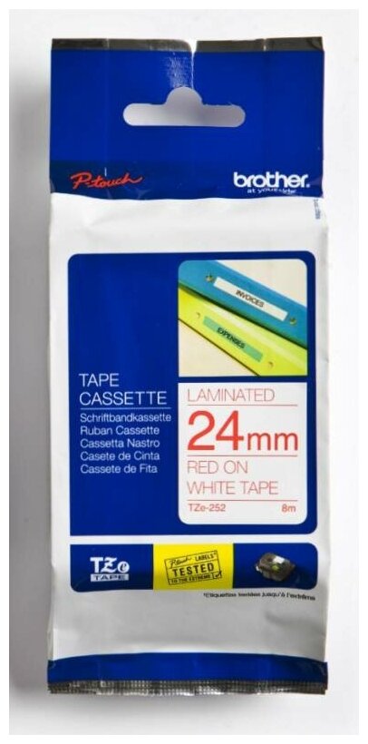 | Особенности | Ламинированные ленты Brother P-touch состоят из 6 слоев различных материалов, в результате чего получается тонкая и очень прочная наклейка. Буквы и символы печатаются путем термопереноса чернил и находятся между двумя слоями защитной полиэстерной пленки. В результате получается практически неразрушаемая наклейка, которая может выдерживать даже самые тяжелые условия эксплуатации. |