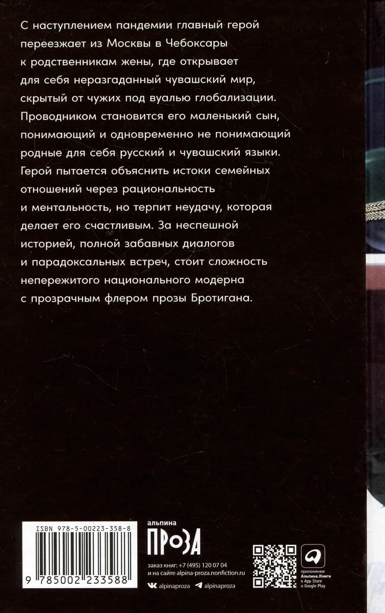 С наступлением пандемии главный герой на год переезжает из столицы в Чувашию, к родственникам жены, и оказывается в незнакомом мире, подчиняющемся своим внутренним законам. Наблюдая за маленьким сыном, понимающим и одновременно не понимающим родные языки родителей — русский и чувашский, герой невольно сравнивает себя с малышом, изучая местный уклад и пытаясь приноровиться к непривычной ментальности и новому темпу жизни. Эта история, написанная в неспешной шукшинской манере, полна забавных диалогов и парадоксальных встреч. Здесь серьезное соседствует с абсурдным, а границы разумного кажутся зыбкими, резонируя со скоротечной ковидной реальностью.