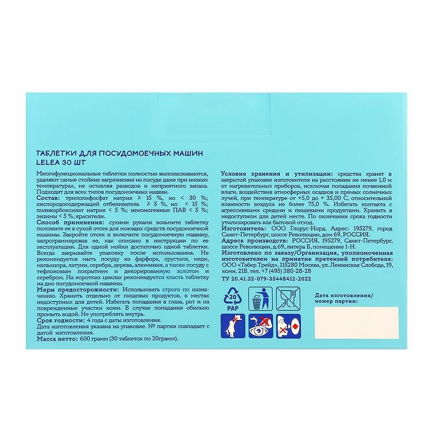 Таблетки для посудомоечной машины Lelea ALL in 1 30 шт
