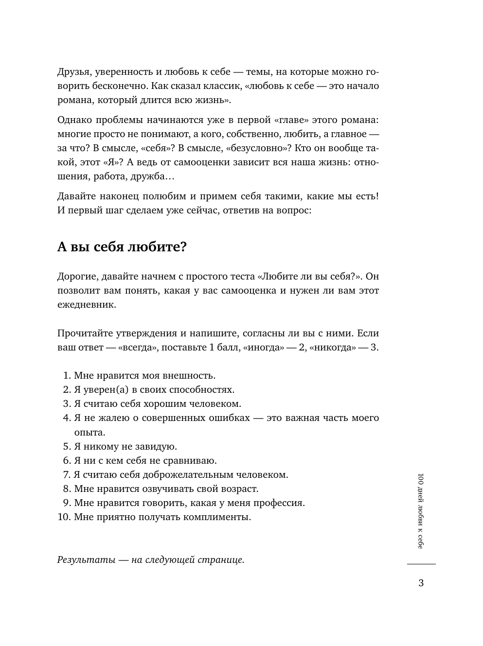 «100 дней уверенности в себе» — это ежедневник от автора бестселлера «Хочу и буду», популярного психолога Михаила Лабковского. В ежедневнике вас ждут: тексты-напутствия на каждый день - о любви к себе и самооценке; вопросы и задания, которые помогут побороть неуверенность в себе; комиксы с «нездоровым» и «здоровым» подходом к жизни; привычки уверенного в себе человека, тесты «Любите ли вы себя?» и «Нарцисс ли вы», а также тесты на невроз и самооценку; трекер для трудоголиков, чтобы разделять работу и личное время; трекер для «самозванцев», который поможет сосредоточиться на достижениях и перестать сомневаться в себе.