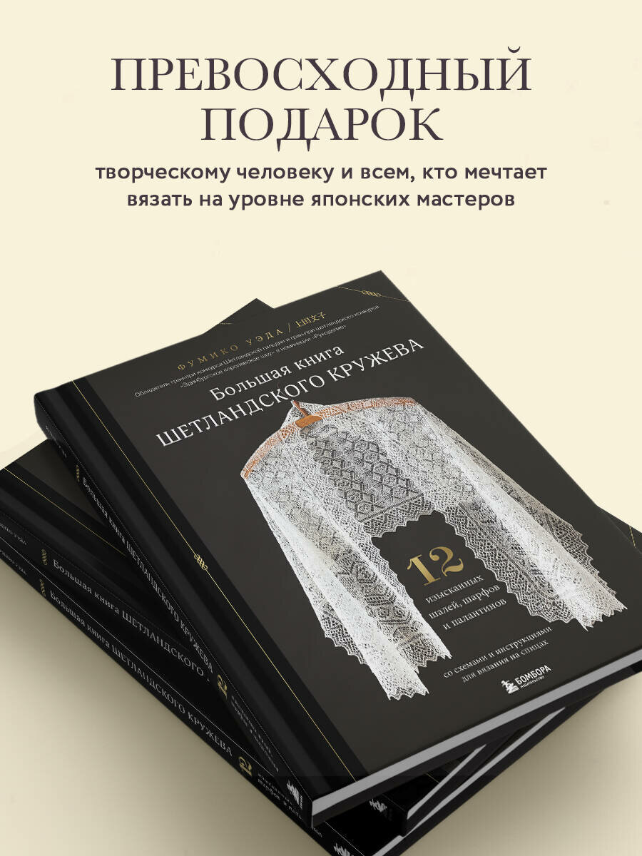 Большая книга Шетландского кружева. 12 изысканных шалей шарфов и палантинов для вязания на спицах (Фумико Уэда); Эксмо, 2024