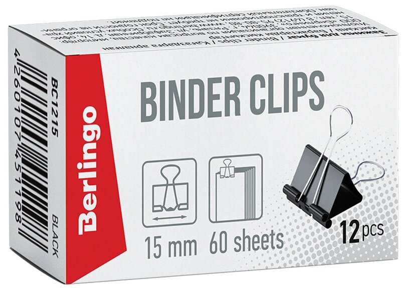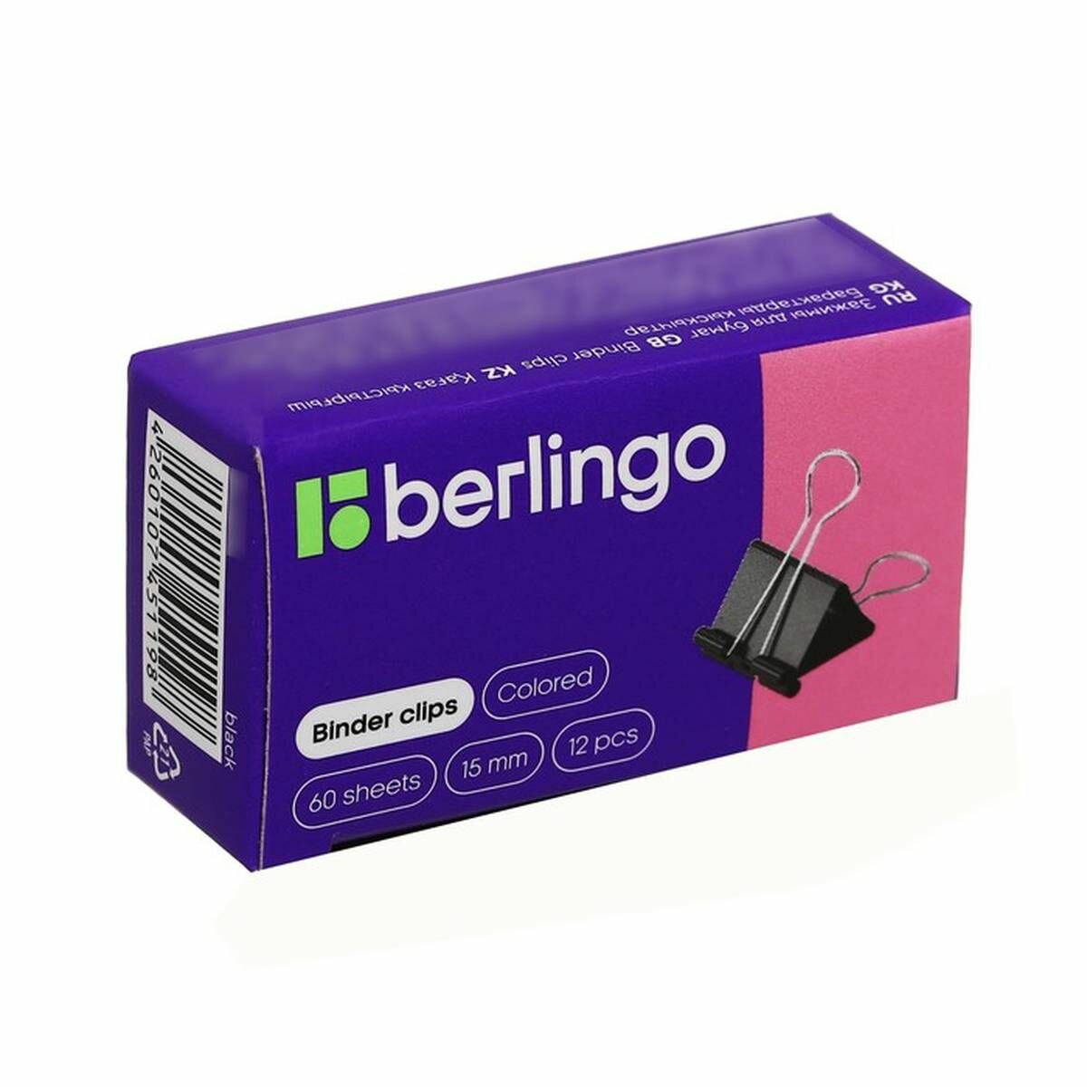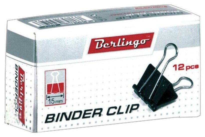 Зажимы для бумаг Berlingo 15 мм 12 шт. черные картонная коробка (BC1215)