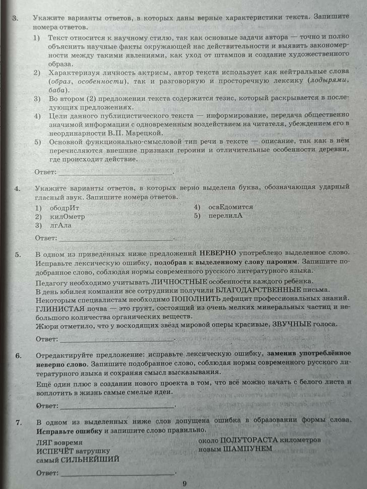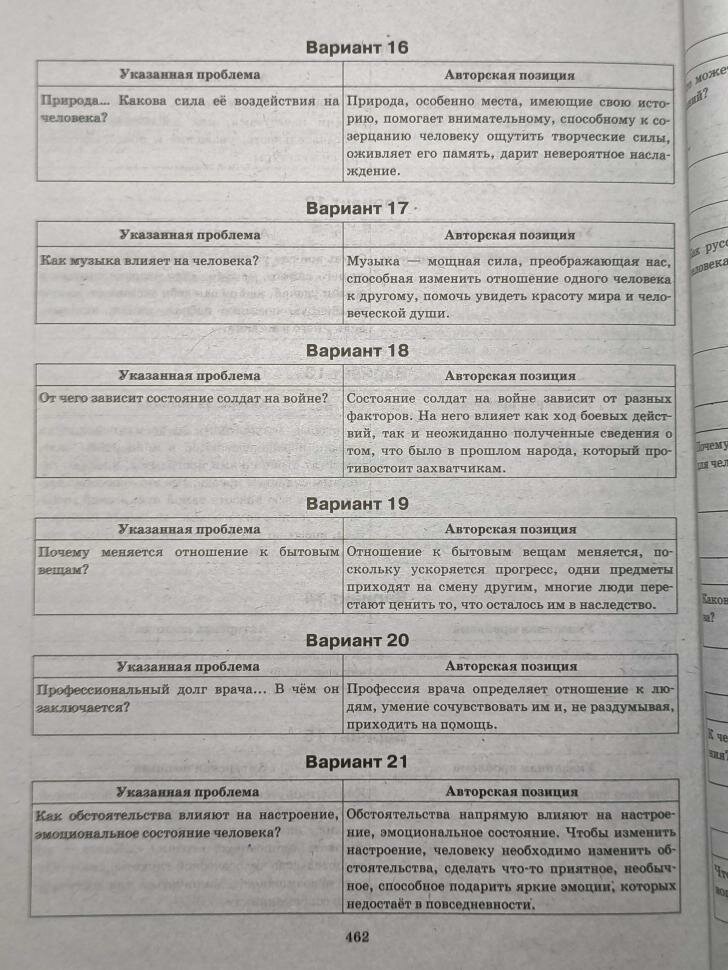 - ответы ко всем вариантам заданий;