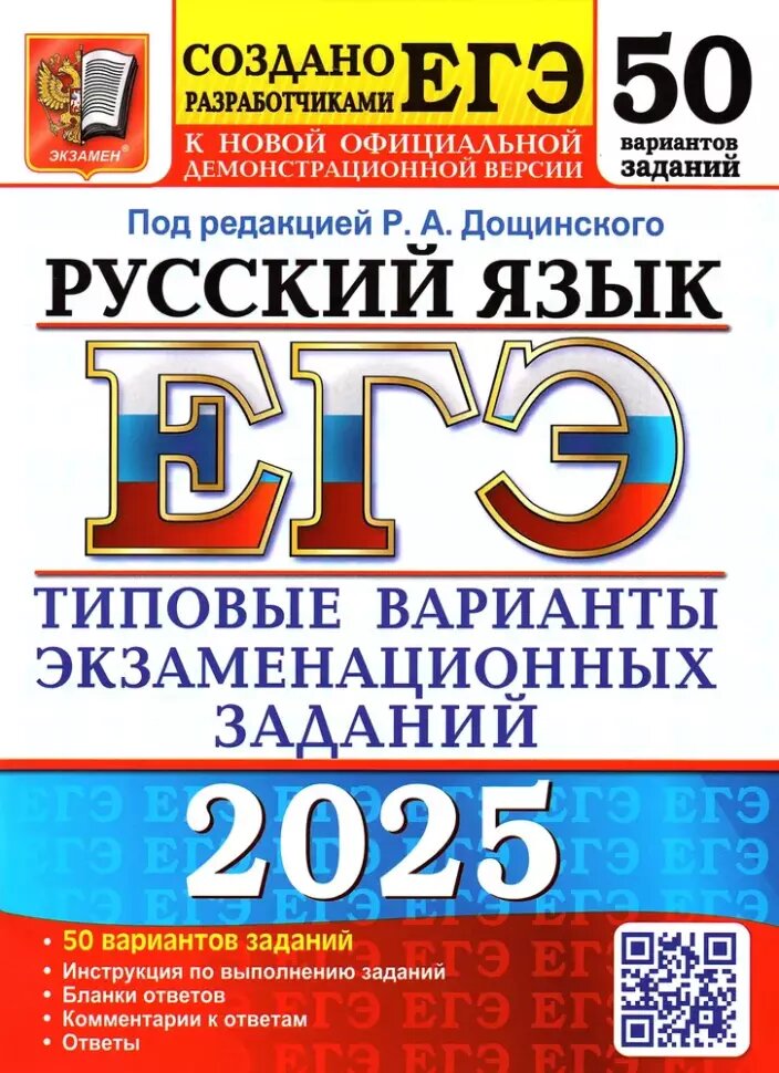 ЕГЭ-2025. Русский язык. 50 вариантов. Типовые варианты экзаменационных заданий от разработчиков ЕГЭ (Дощинский Роман Анатольевич); Экзамен, 2025
