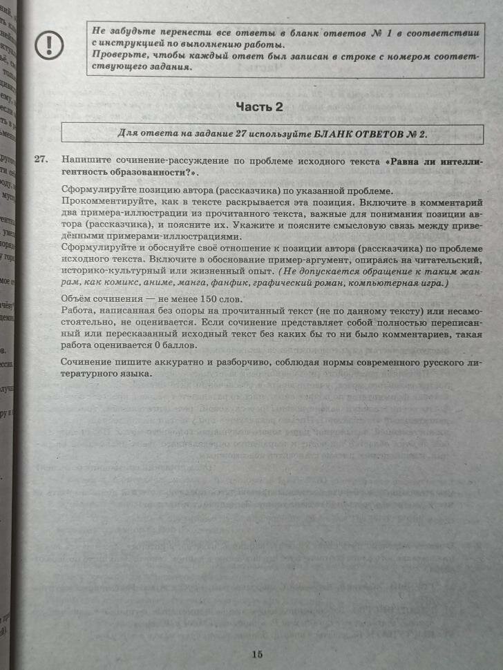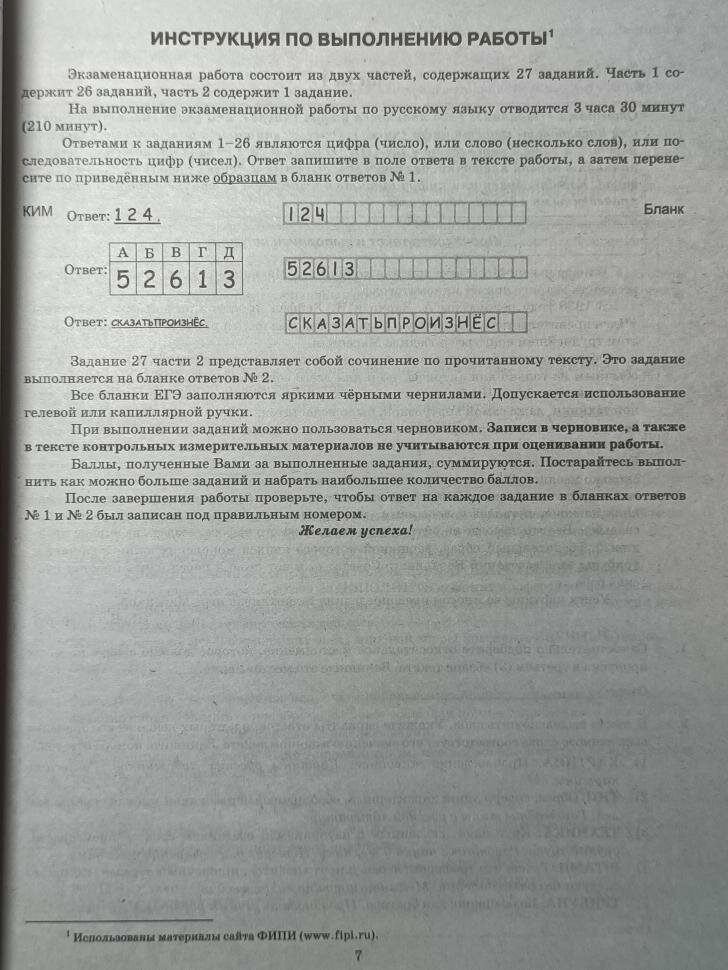 - образцы бланков, используемых на ЕГЭ для записи ответов.