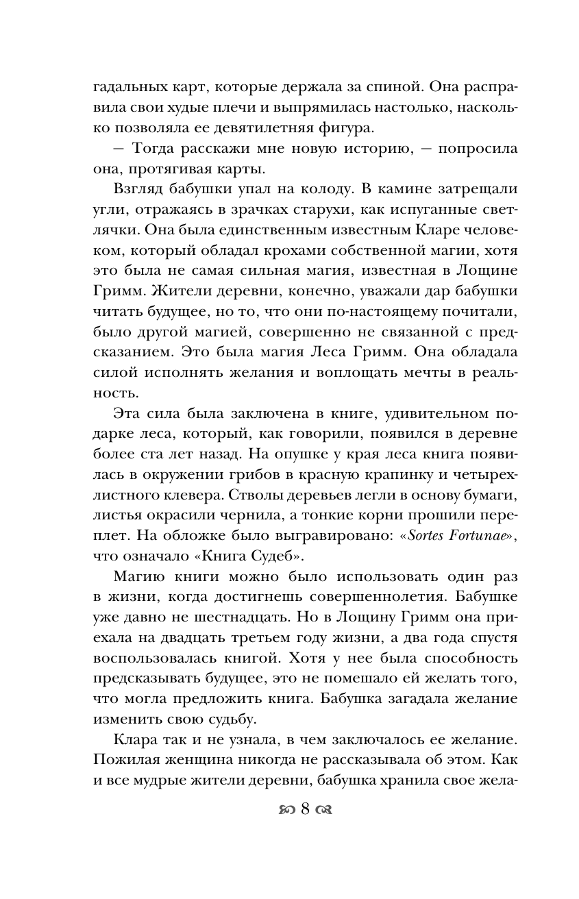 Жители Лощины Гримм верят в магию леса. Ее сила заключена в «Книге Судеб», которая может исполнять желания и воплощать мечты в реальность. Однажды кто-то совершил убийство и использовал желание, чтобы замести следы. За это деревню прокляли, а сама книга бесследно исчезла. С тех пор все, кто уходил в лес, больше не возвращались. В детстве Кларе было предсказано, что она погибнет совсем молодой. Теперь, когда Кларе исполнилось шестнадцать, она решает отправиться на поиски книги, чтобы разрушить проклятие. Она не боится предсказания, ведь вместе с ней идет ее друг Аксель. Смогут ли они выбраться из смертельно опасного леса Гримм? Места, где обитают жуткие звери, словно ожившие со страниц мрачных сказок.