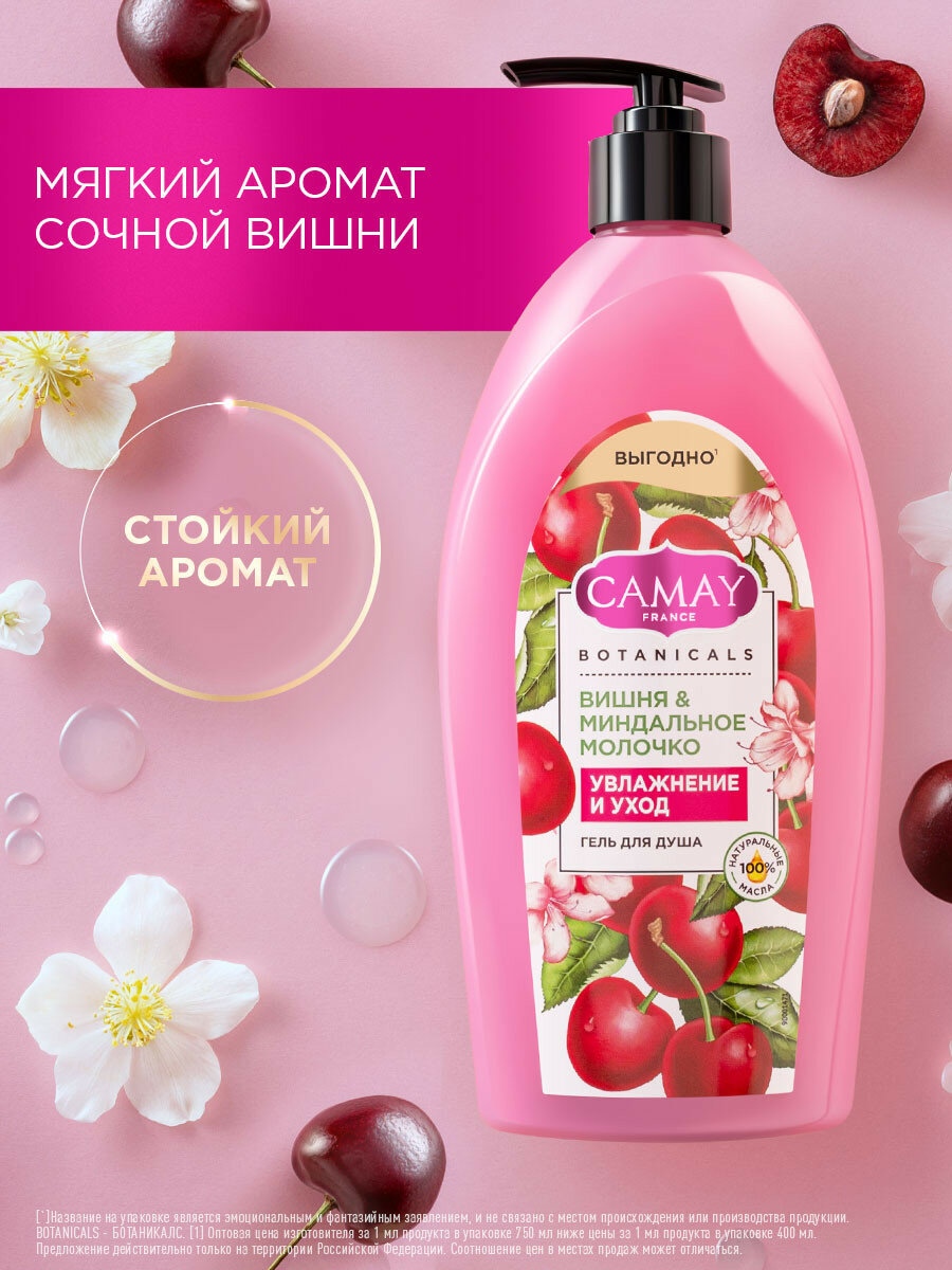 Сервис сравнения цен СкидкаГИД предлагает сравнить цены на товар «Гель для душа CAMAY Botanicals вишня и миндаль 750 мл»
