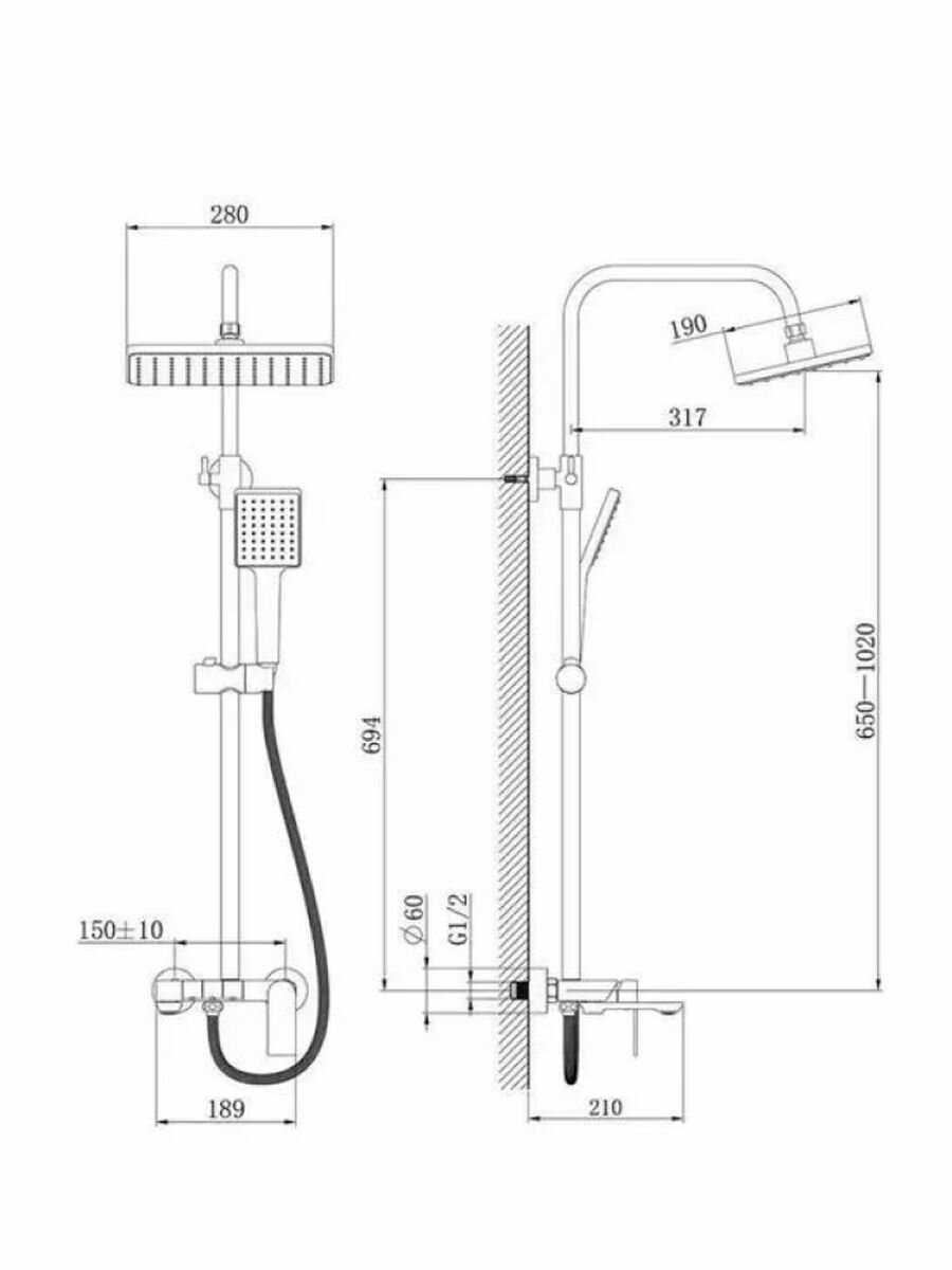 | Дополнительная информация | регулируемая высота душевой штанги 65-102 см |