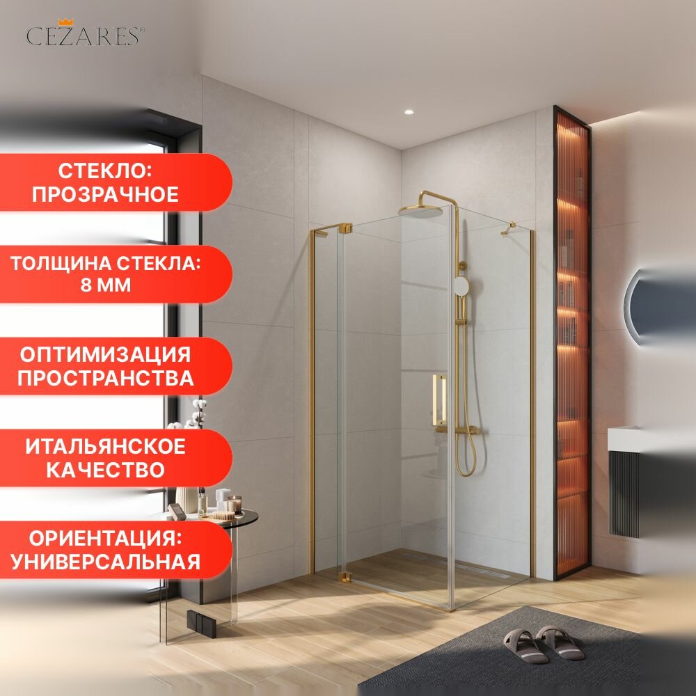 Душевой уголок Cezares SLIDER 100x80 SLIDER-AH-1-80-100/110-C-BORO стекло прозрачное, профиль брашированное золото