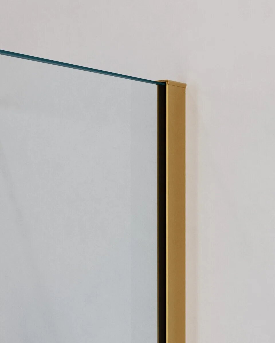 Модель: SLIDER 80x80 SLIDER-AH-1-80-80/90-C-BORO стекло прозрачное, профиль брашированное золото