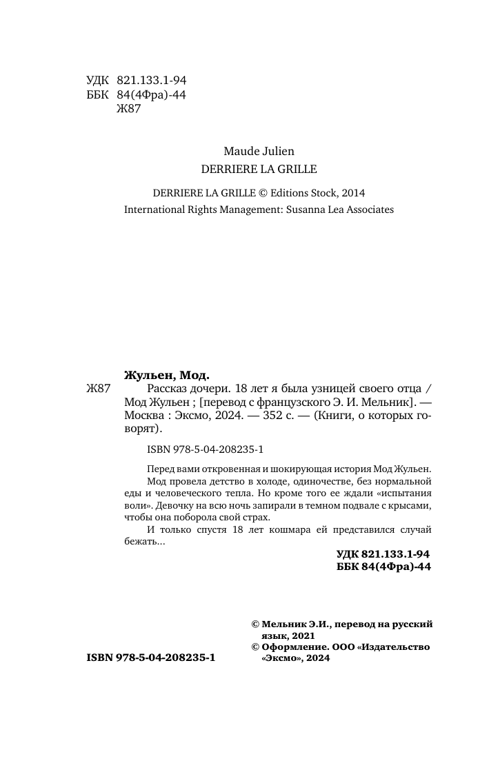 Рассказ дочери. 18 лет я была узницей своего отца (Жульен Мод); Эксмо, БОМБОРА, 2024