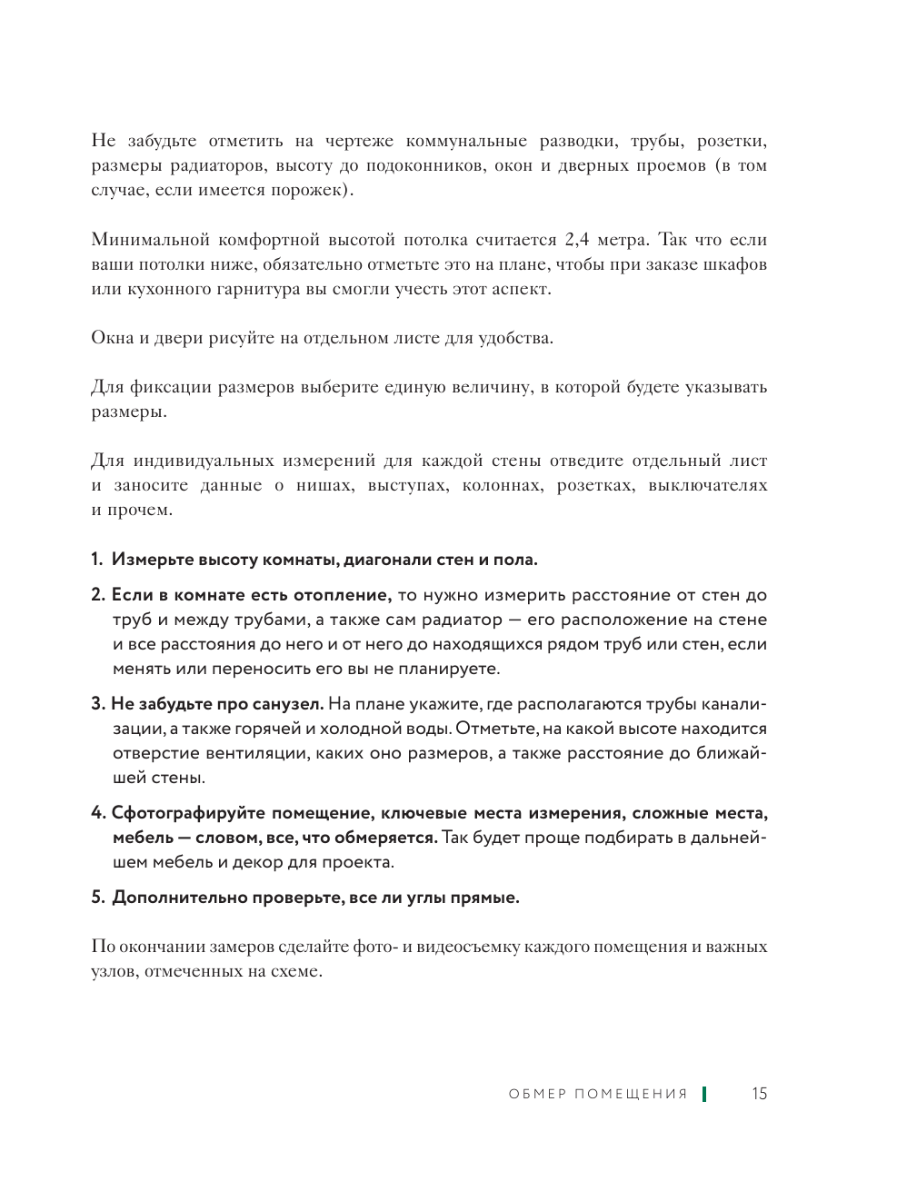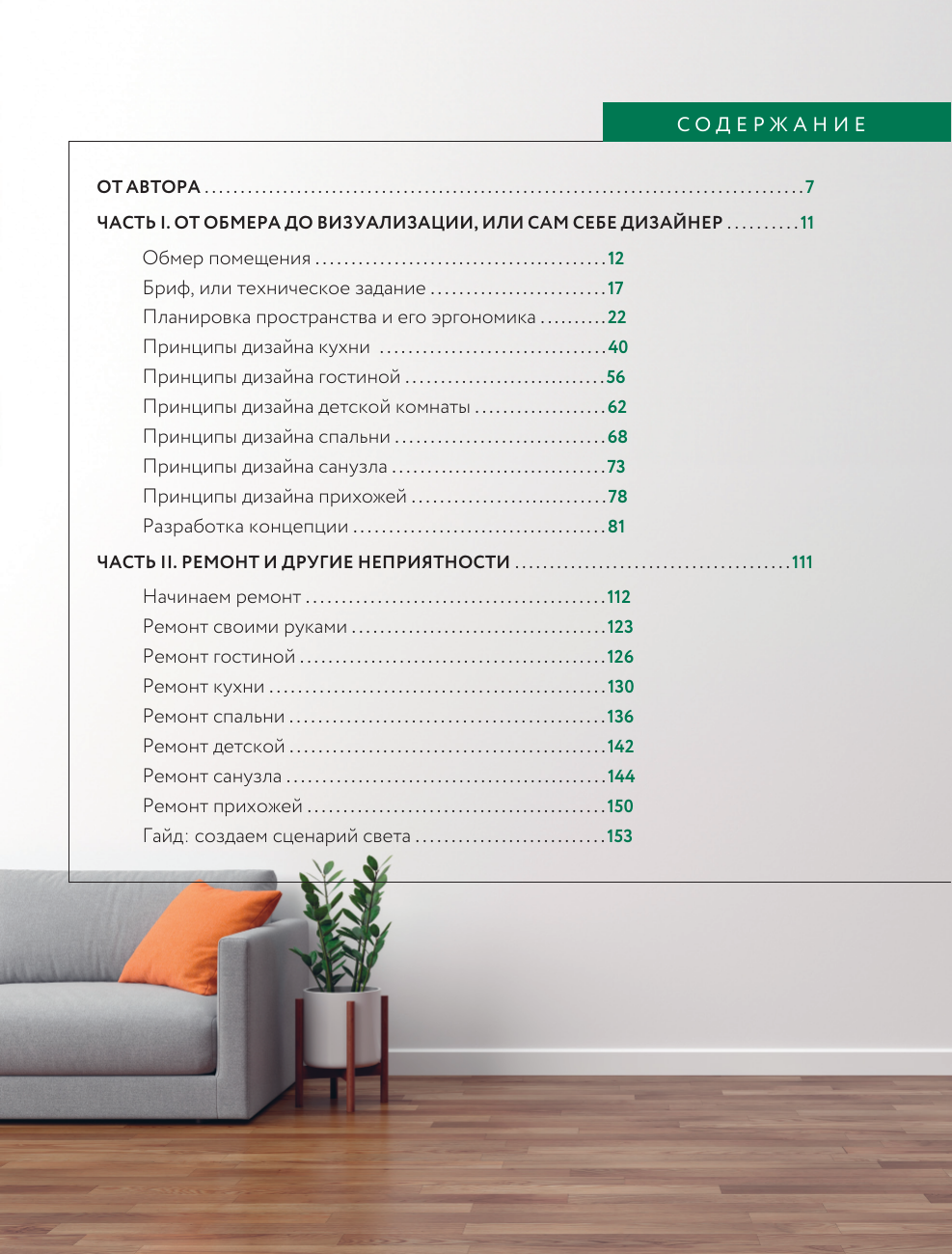 Мечтая о стильном дизайне своего дома, грамотной эргономике и организации пространства, необязательно изучать миллион ресурсов в Интернете и учиться на специальных курсах. В этой книге собрана только важная и нужная базовая информация, которая станет удобной шпаргалкой для всех, кто хочет создать дизайн-проект самостоятельно. В ней представлены все этапы выполнения проекта с четкими пошаговыми рекомендациями, а также советы по планировке, зонированию, описание популярных стилей и полезные чек-листы, облегчающие создание проекта. Во второй части описывается процесс выполнения ремонта для понимания последовательности действий, и возможности оценить текущий этап и масштаб работы. Также вы найдете рекомендации по расчету бюджета, чтобы ремонт оставался под вашим контролем и не превратился в бесконечный процесс.