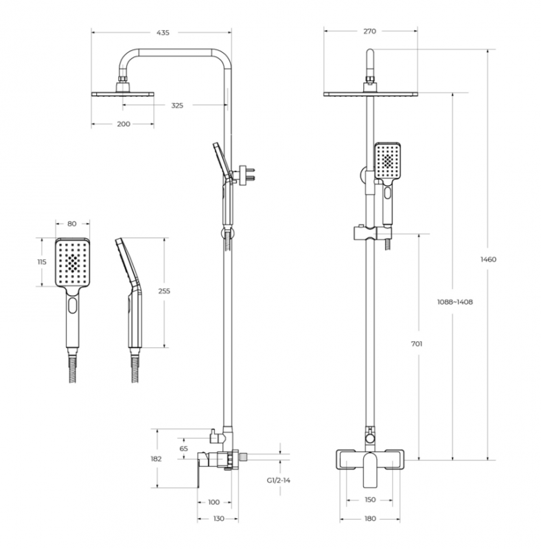 - Регулируемая высота верхнего душа.