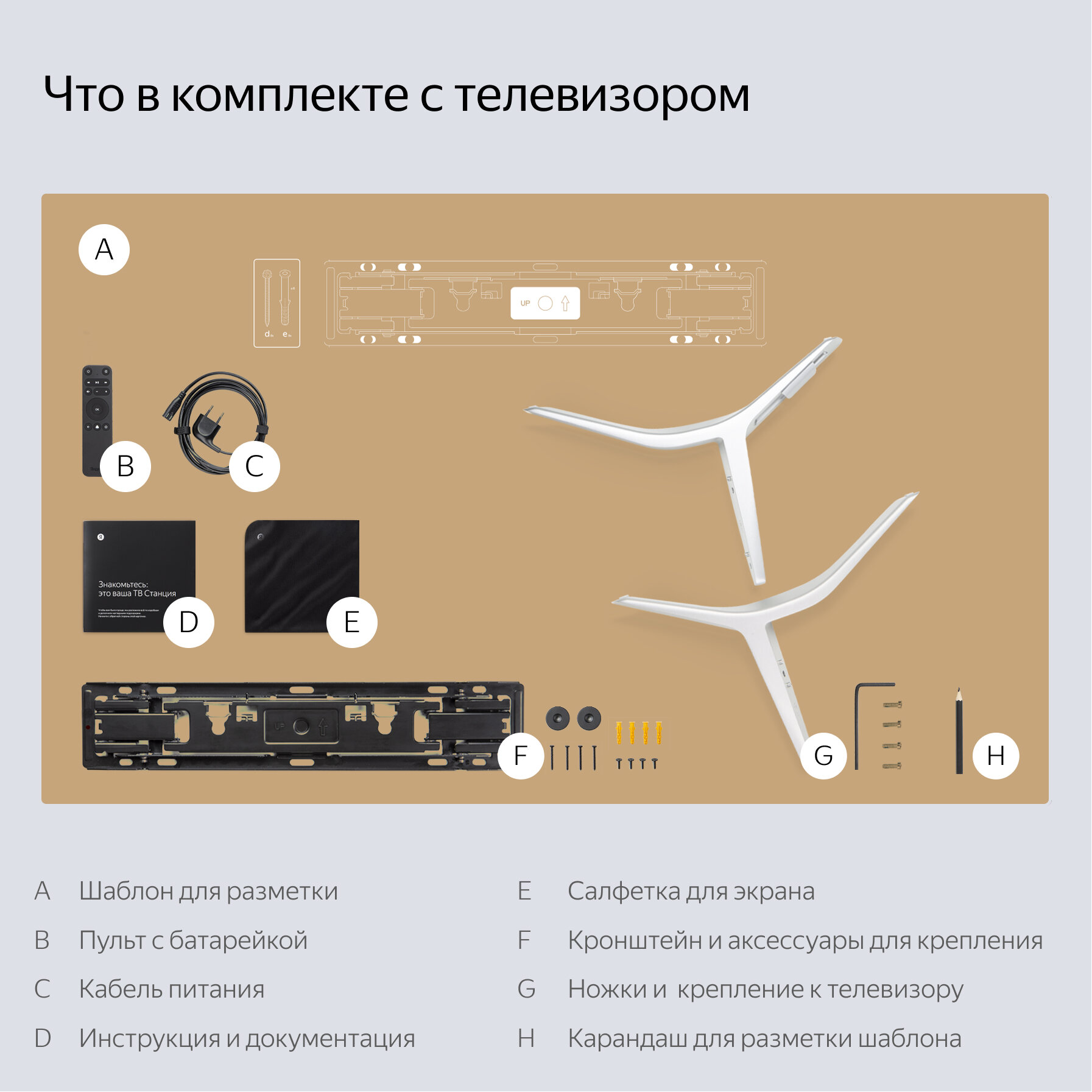 ТВ Станция Про — новый умный телевизор Яндекса, объединивший в себе лучшие технологии телевизоров и умных колонок с Алисой. Технические характеристики делают этот продукт флагманом ТВ-линейки Яндекса. Матовый QLED-экран — 1,07 млрд цветов без бликов и искажений. Технологии HDR и МЕМС — для большей детализации изображения и плавности динамичных сцен. Объёмное трёхполосное звучание — 6 разнонаправленных динамиков мощностью 44 Вт.