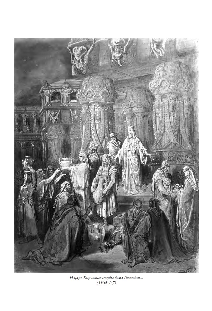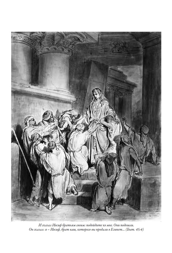 Впервые в России текст Библии, утвержденный Святейшим Синодом (так называемый Синодальный перевод) публикуется с оригинальными рисунками Гюстава Доре. Талантливый французский художник работал над ними два года для иллюстрированного издания Библии на немецком языке; этот перевод был выполнен писателем и раввином Людвигом Филиппсоном. Библия с гравюрами по рисункам Доре, вышедшая в 1866 г., стала настолько популярной, что через год оригинальные рисунки художника были опубликованы отдельным трехтомником. Именно они, а невыполненные по ним гравюры, воспроизводятся в настоящем издании. Библия является не только основой христианства, но и важнейшей частью всей мировой культуры. Ее Ветхий Завет был написан на древнееврейском языке. Эти тексты, создававшиеся с XV по I в. до н. э., тщательно сохранялись при переписывании и к X в. н. э. благодаря усилиям еврейских ученых масоретов, работавших с древними рукописями Священного Писания, обрели окончательно устоявшуюся форму. Ветхий Завет, переведенный в IIII в. до и. э. в Александрии на древнегреческий язык, стал называться Септуагинтой, то есть «переводом семидесяти старцев». На древнегреческом языке был написан и Новый Завет Библии. В конце IV в. н. э. появилась Вульгата перевод Библии на латынь, и именно эта «латинская Библия» была впервые напечатана в 1450 г. Иоганном Гутенбергом. В IX в. Кирилл и Мефодий перевели Библию на старославянский язык. С появлением на Руси книгопечатания Библию стали издавать именно на церковнославянском языке; эти тексты использовались как в церковном, так и в домашнем обиходе. В 1751 г. по указу императрицы Елизаветы они были сверены с Септуагинтой, однако к тому времени церковнославянский язык понимали уже далеко не все россияне, поэтому по указу Александра I Библию начали издавать на русском языке. Перевод был выполнен Синодом высшим государственным органом церковного управления, поэтому он стал именоваться синодальным. Перевод 39 канонических книг Ветхого Завета был осуществлен с иврита (масоретского текста); десять его неканонических книг были переведены с греческого, и одна с латинской Вульгаты. Перевод Нового Завета был выполнен с греческою оригинала. В данном издании впервые в России публикуются изображения 230 оригинальных рисунков Гюстава Доре. Талантливый французский художник работал над ними два года, когда шла подготовка к изданию Библии, переведенной на немецкий язык писателем и раввином Людвигом Филиппсоном.