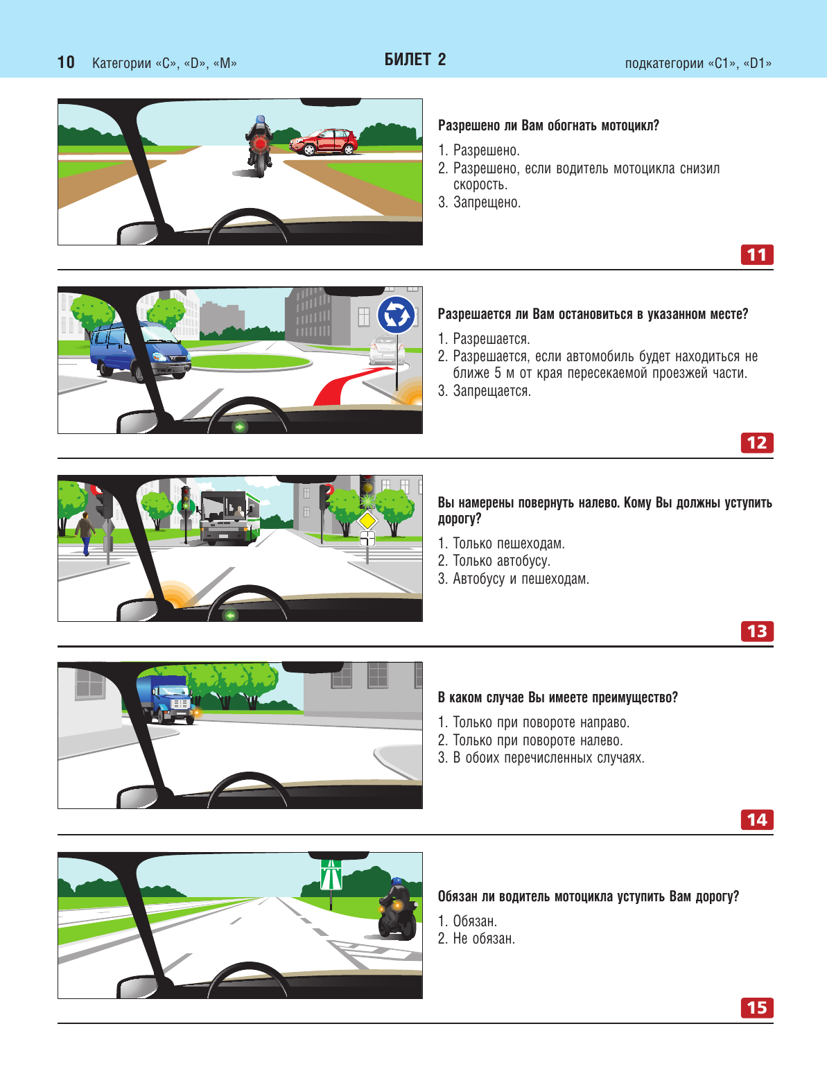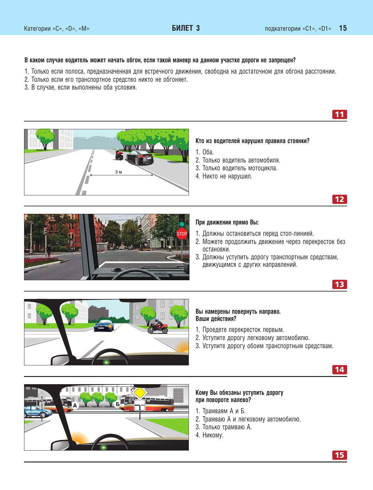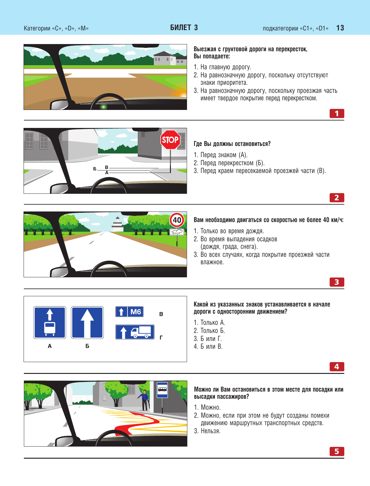 Издание содержит все 800 вопросов официальных экзаменационных билетов, которые используются при проведении теоретического экзамена на право управления транспортными средствами категорий С, Д, подкатегорий С1, Д 1 в подразделениях Государственной инспекции безопасности дорожного движения. За каждым из 40 билетов с детальными яркими иллюстрациями следуют правильные ответы с пояснительными комментариями. Для удобства самоподготовки в книге имеется таблица, где дублируются номера правильных ответов.