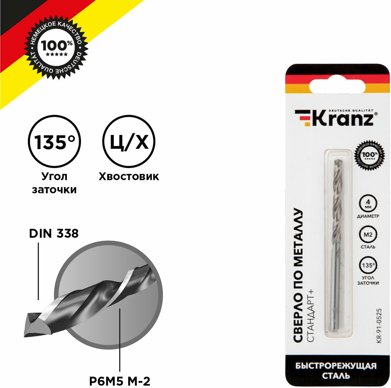 Сверло спиральное по металлу Kranz HSS стандарт 4x75 мм