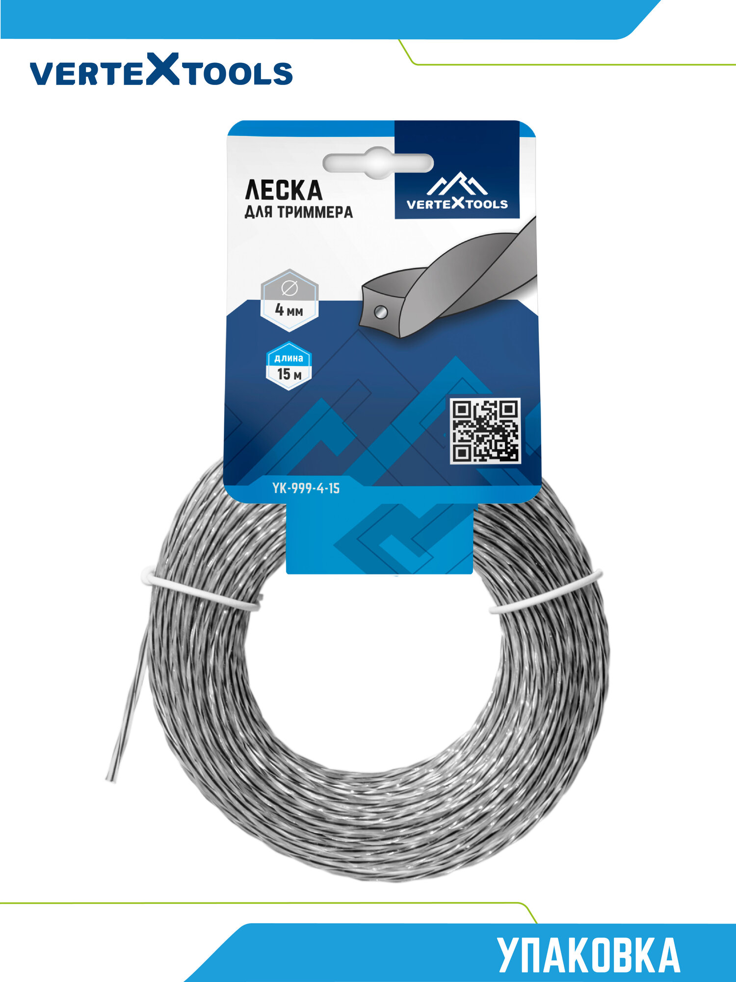 Леска для триммера Vertextools YK-999-4-15 4 мм 15 м