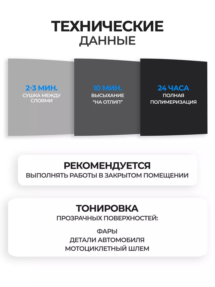 -В основном применяется при тонировке фар, а также иных, прозрачных или цветных, поверхностей.