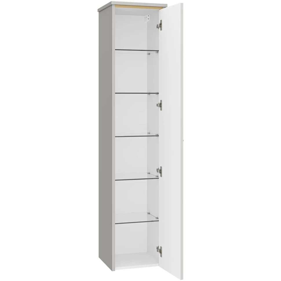 - Система хранения: 1 распашная дверца, полки из стекла внутри шкафа.