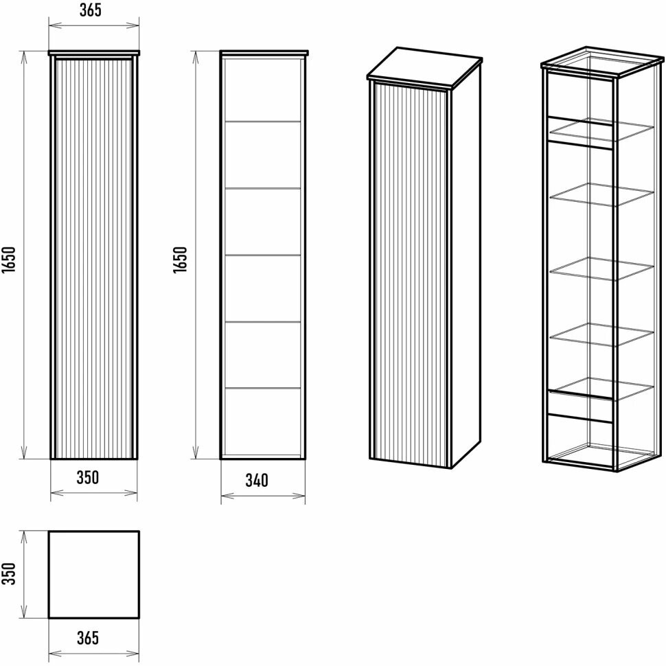 - Габариты (ШхВхГ): 365х1650х350 мм.
