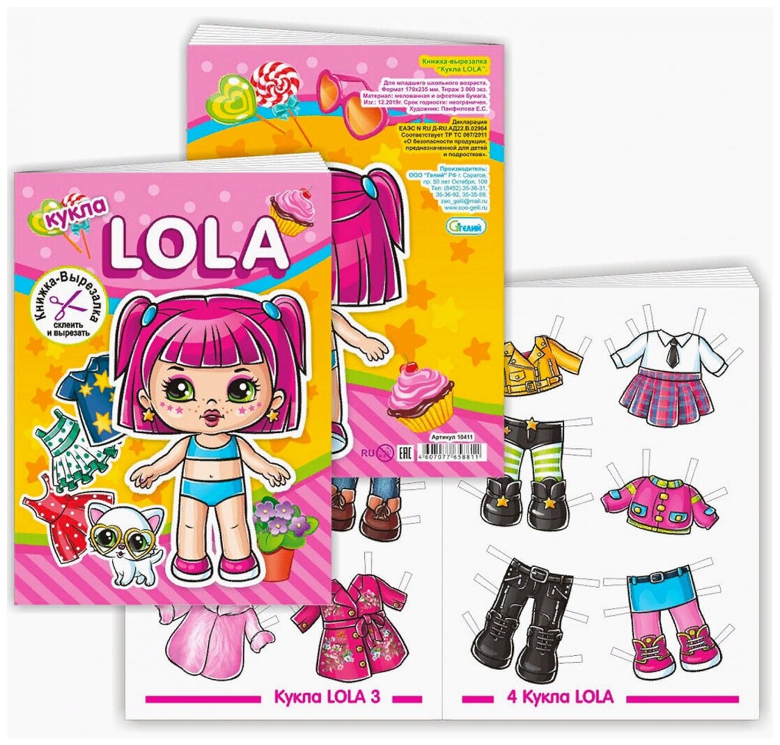 Книжка-вырезалка Гелий Кукла LOLA 2 в 1 кукла+одежда