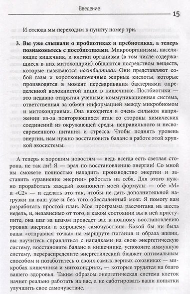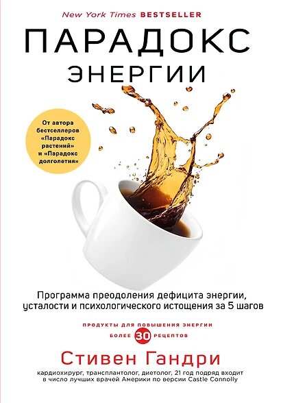 В своих бестселлерах «Парадокс растений» и «Парадокс долголетия» доктор Стивен Р. Гандри предложил принципиально новый взгляд на здоровье. В книге «Энергетический парадокс» автор описывает связь здоровья кишечника, микробиома и митохондрий и ощущения усталости, переутомления, упадка сил. Из книги читатель узнает, как «плохая» еда митохондрий приводит к развитию депрессии, хронической усталости, беспокойству и сниженному метаболизму. Когда митохондрии не получают достаточного количества топлива, вы становитесь медленнее и толще. Усталость — это сигнал тревоги, исходящий от организма, который предупреждает нас о том, что что-то не так.