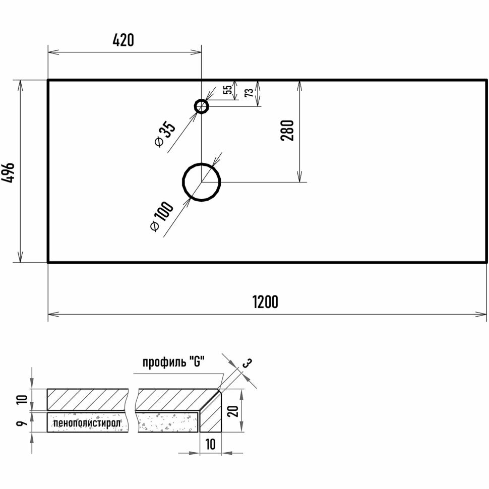 - Размеры (ШхВхГ): 1000х20х496 мм.