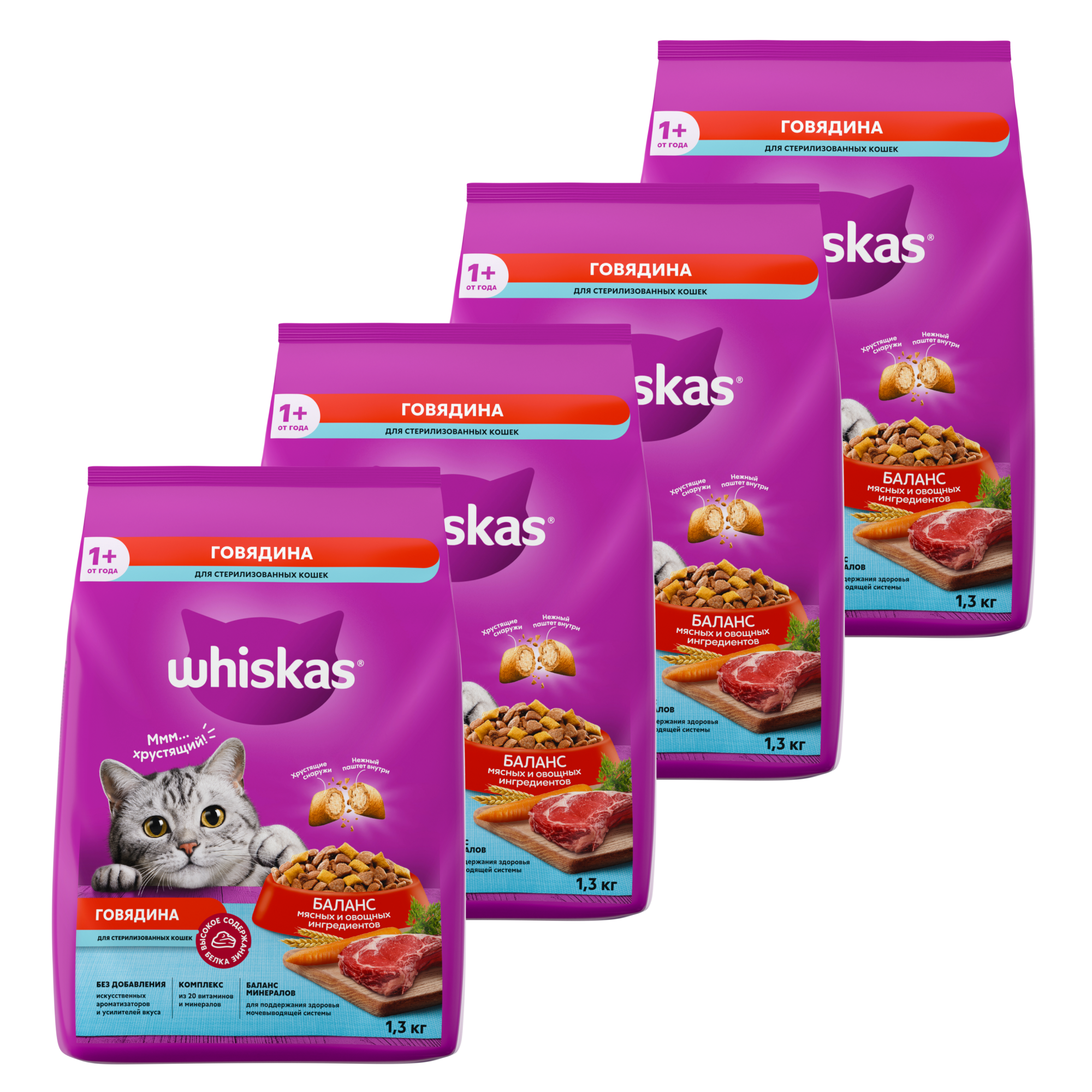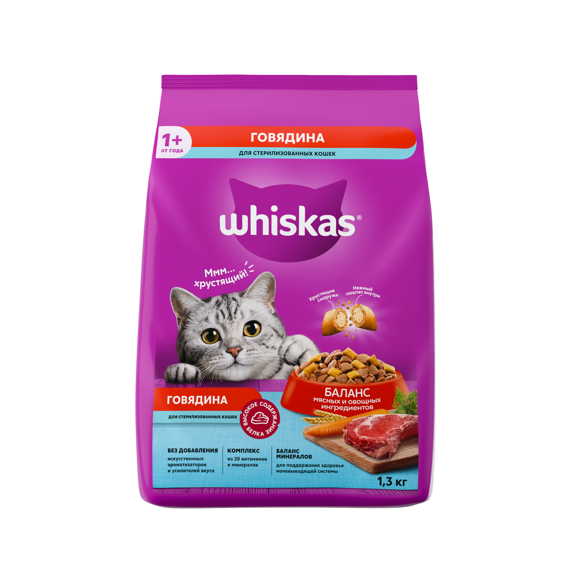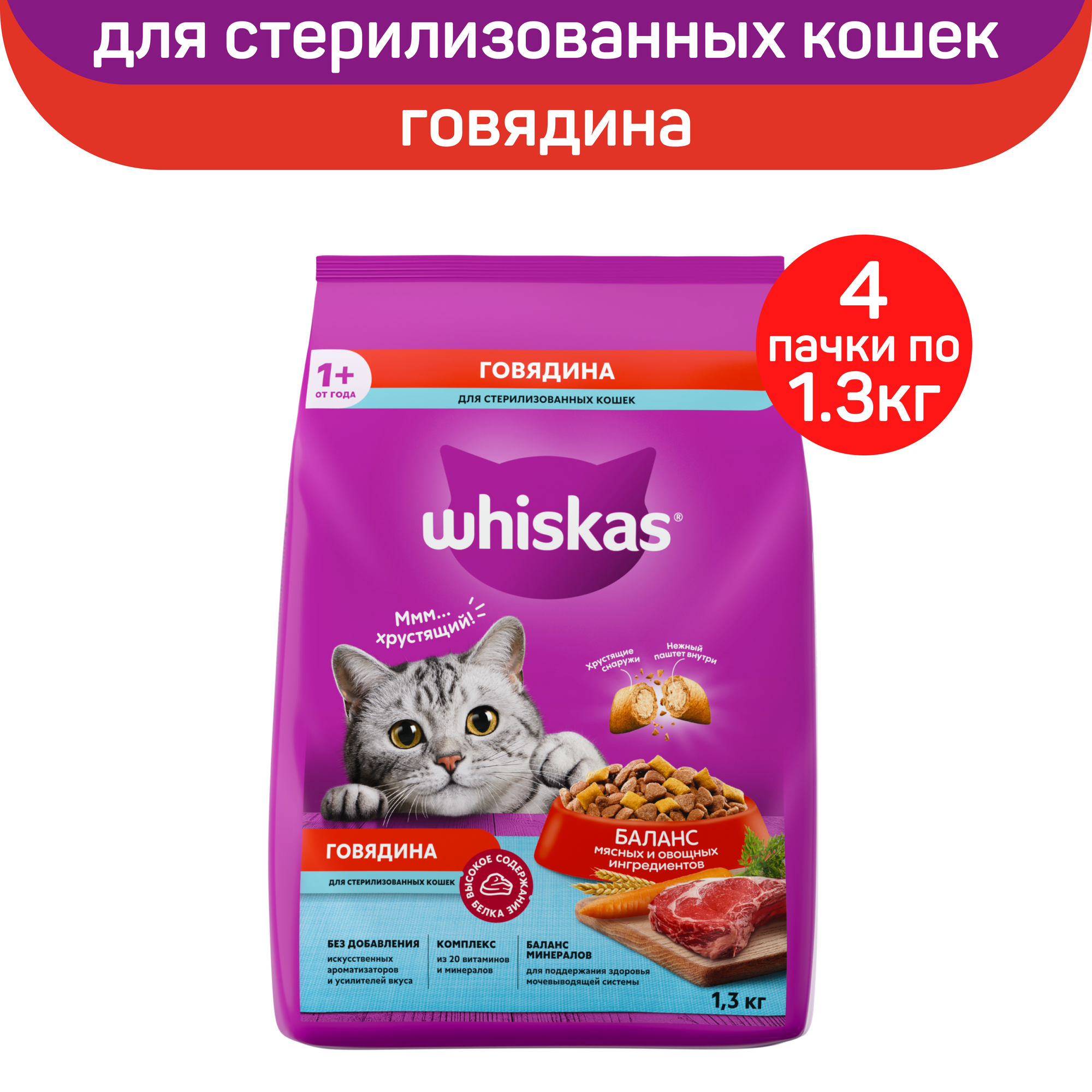 Whiskas Сухой корм для стерилизованных кошек подушечки с паштетом из говядины 13 кг