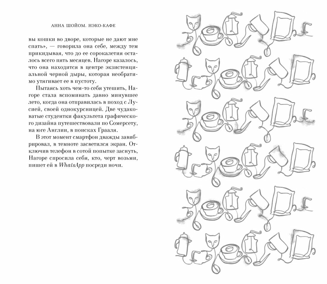 Нагоре только что вернулась из Лондона, где бросила свою галерею и рассталась с бойфрендом. Она больше не может рисовать и окончательно разочаровалась в жизни. У нее нет денег даже на оплату квартиры, а у родителей просить неловко — ей все-таки почти сорок лет. И подруга находит ей работу в барселонском «Нэко-кафе», которое только что открыла японка Юми. Сварить кофе Нагоре еще как-то способна, но сосуществовать с обитателями нового места работы? Вот это уже проблема. Потому что теперь Нагоре работает в котокафе, а кошек она с детства боится до смерти. Анна Шойом, уроженка Будапешта, живет в Барселоне, где практикует психосоматическую терапию. С кошками она дружит всю жизнь и прекрасно их понимает. «Нэко-кафе» — ее первая чисто художественная книга, прозрачная и трогательная история о том, чему мы можем научиться у кошек, которые, если вдуматься, гораздо мудрее нас, и о том, что нам всегда может выпасть шанс начать жизнь заново. Впервые на русском!