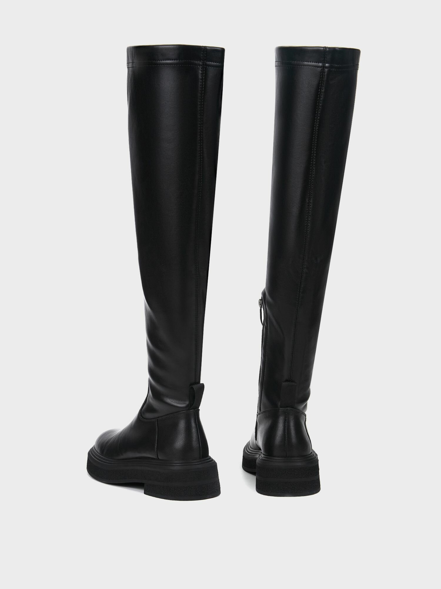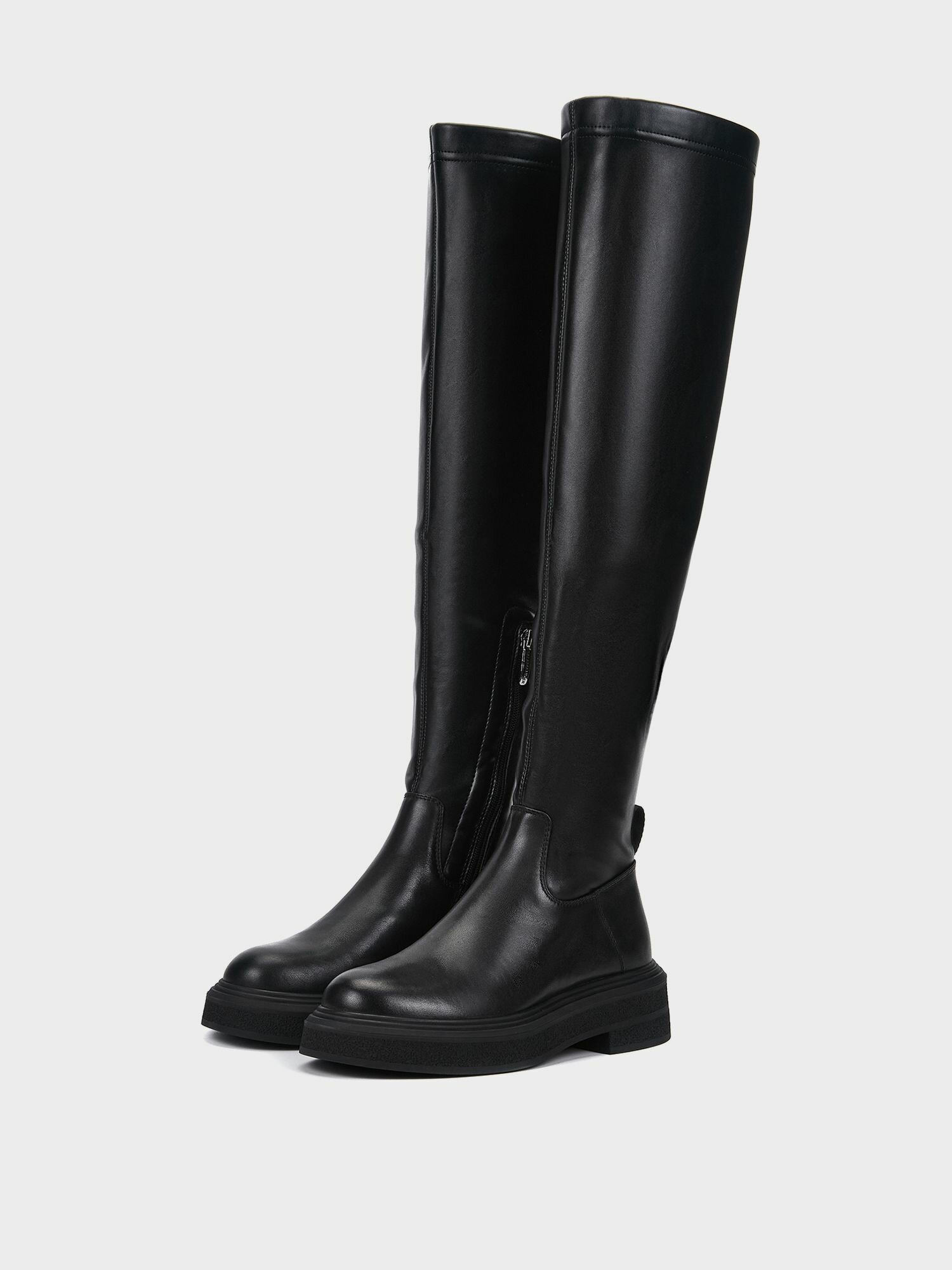 Стильные облегающие ботфорты в классическом черном исполнении. Верх модели сочетается натуральную и искусственную кожу для надежной защиты и идеальной посадки обуви по ноге. Подкладка и стелька утеплены ворсином. Высокая подошва из материала ТЭП обеспечивает комфортную амортизацию и хорошее сцепление с поверхностью.