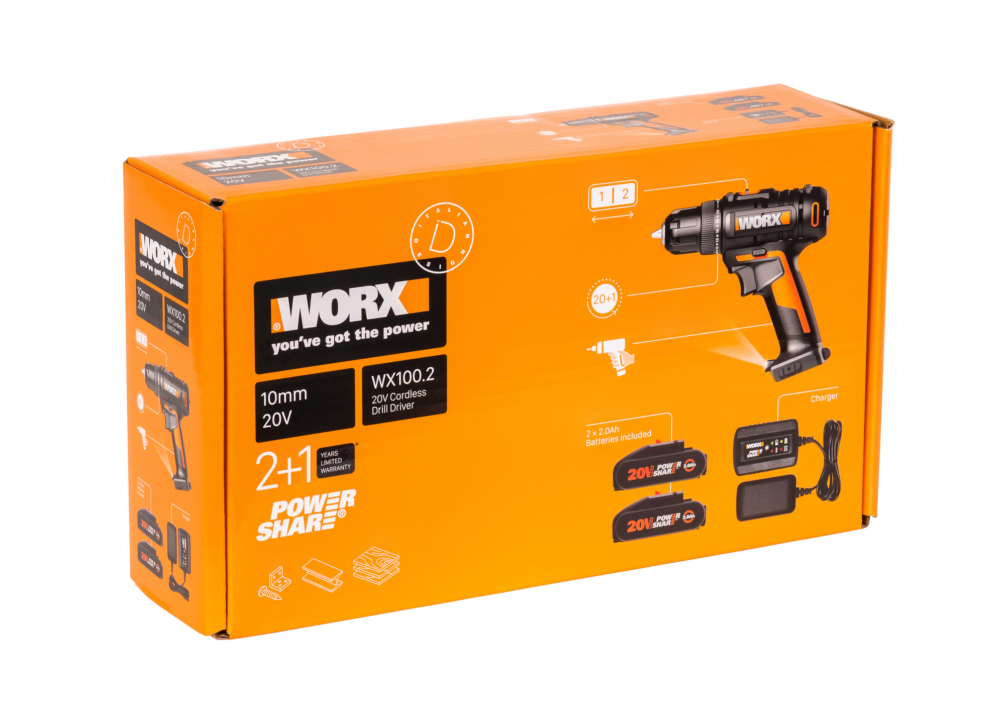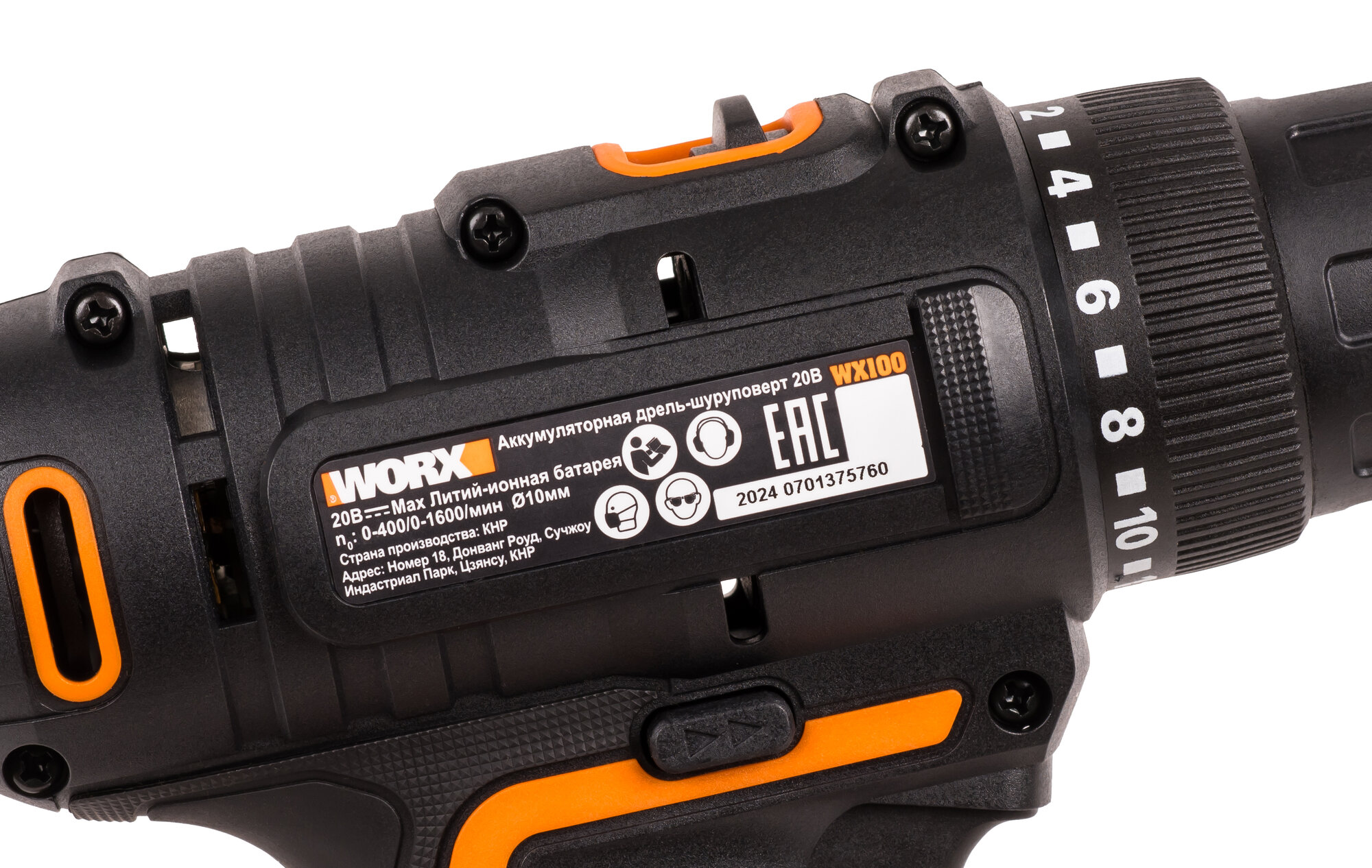 Дрель-шуруповерт WORX 20V (45Hм) аккумуляторная WX100.2