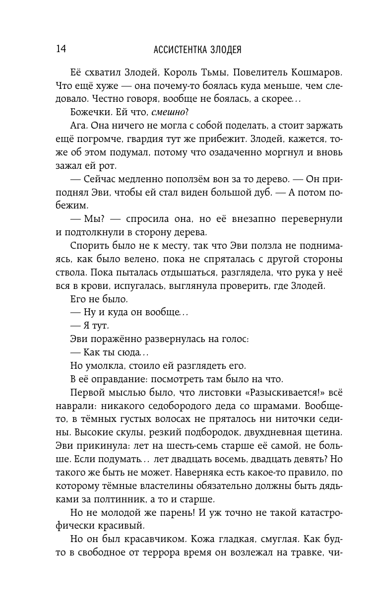Эви Сейдж нужны деньги, чтобы кормить семью. Только поэтому она соглашается работать на Злодея, величайшего врага королевства. Работа, что ни говори, не идеальная: например, приходится привыкать к телам на рабочем столе и отрубленным головам, свисающим с потолка. И всё же трудно слегка не влюбиться, когда твой босс молодой и прекрасный Король Тьмы.Но вскоре становится ясно, что в замке Злодея водятся крысы и не только в буквальном смысле. В ряды его приспешников затесался предатель, который вознамерился помочь благородным героям уничтожить Злодея и всю его гнусную империю. И теперь Эви предстоит выяснить, кто это, пока не стало слишком поздно. В конце концов, новую хорошую работу нынче так сложно найтиBookTok сенсация! Одна из наиболее ожидаемых фэнтези-новинок года!Первая часть трилогии, покорившей читателей на Западе.Уютная и смешная история про мрачноватого Злодея и его оптимистичную ассистентку.Смесь «Однажды в сказке», «Офиса» и «Красавицы и Чудовища».Обложку украшает иллюстрация с персонажами от популярной художницы MARKASS (36 тыс. подписчиков в ВК).